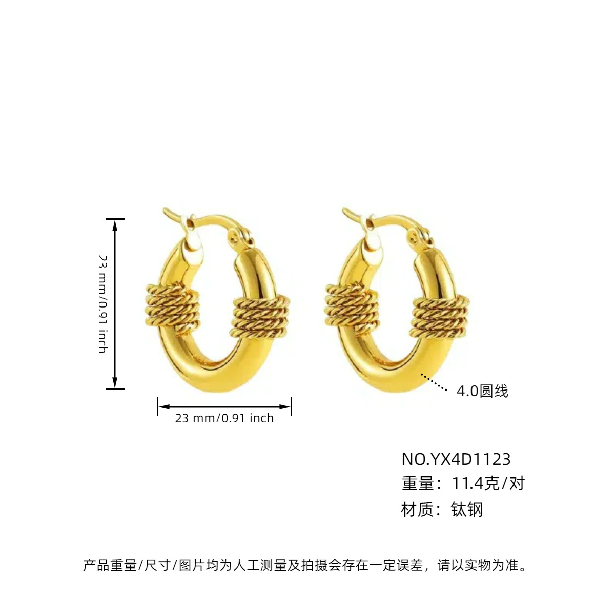 耳夹款4.0外径金色23mm