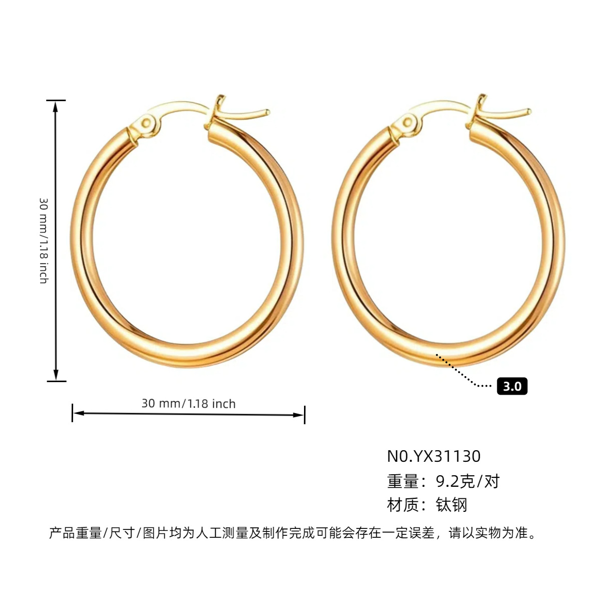 耳夹款4.0外径金色30mm