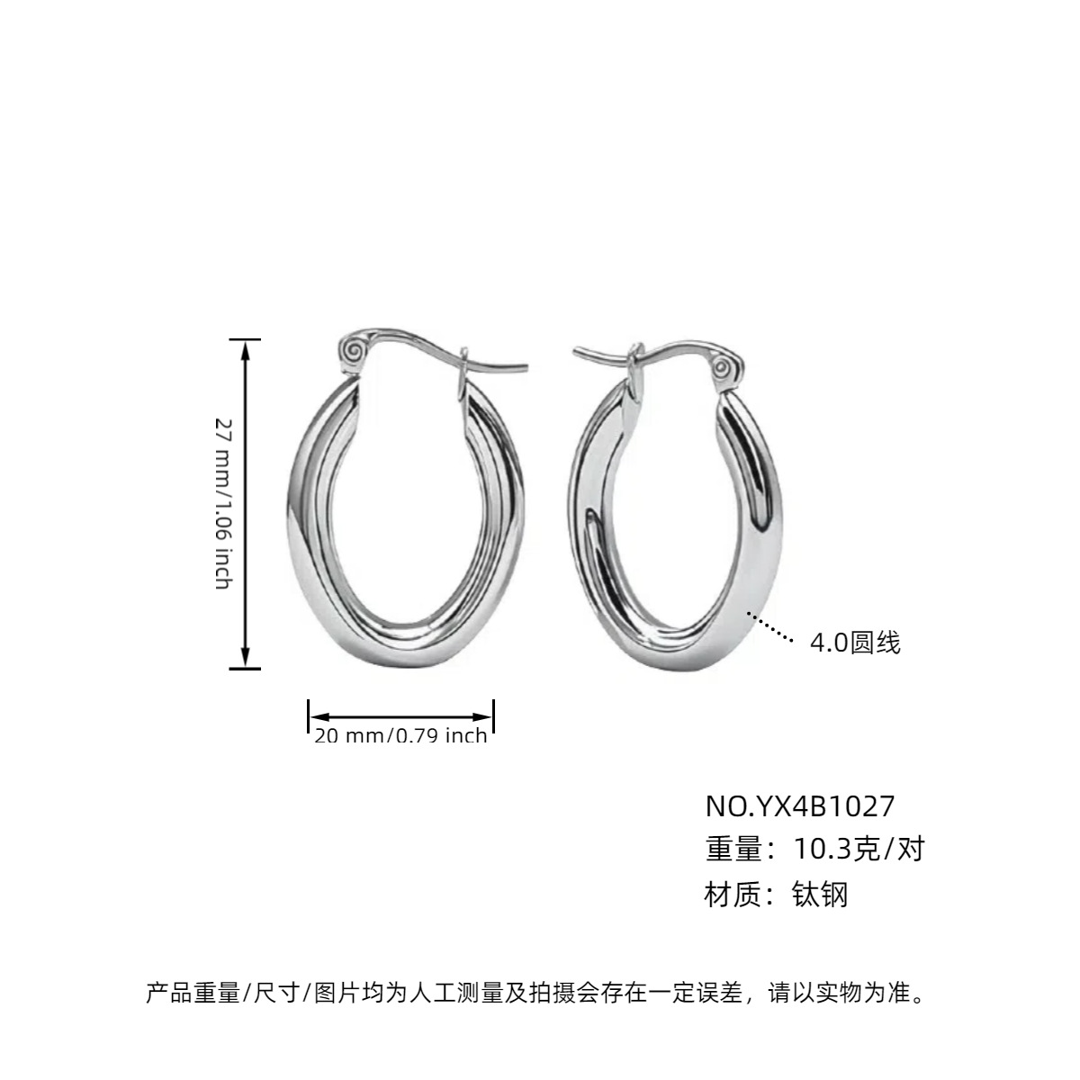 耳夹款4.0外径钢色18mm
