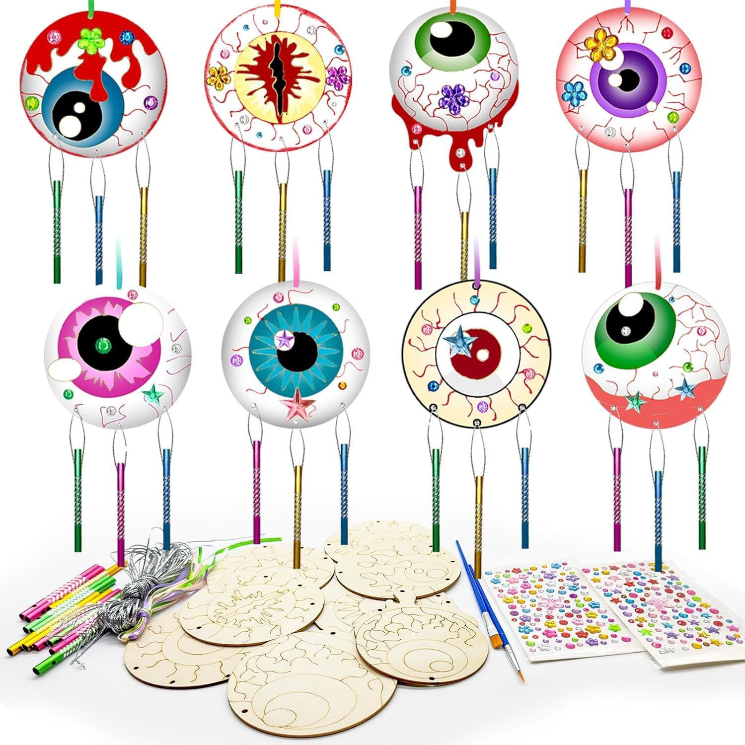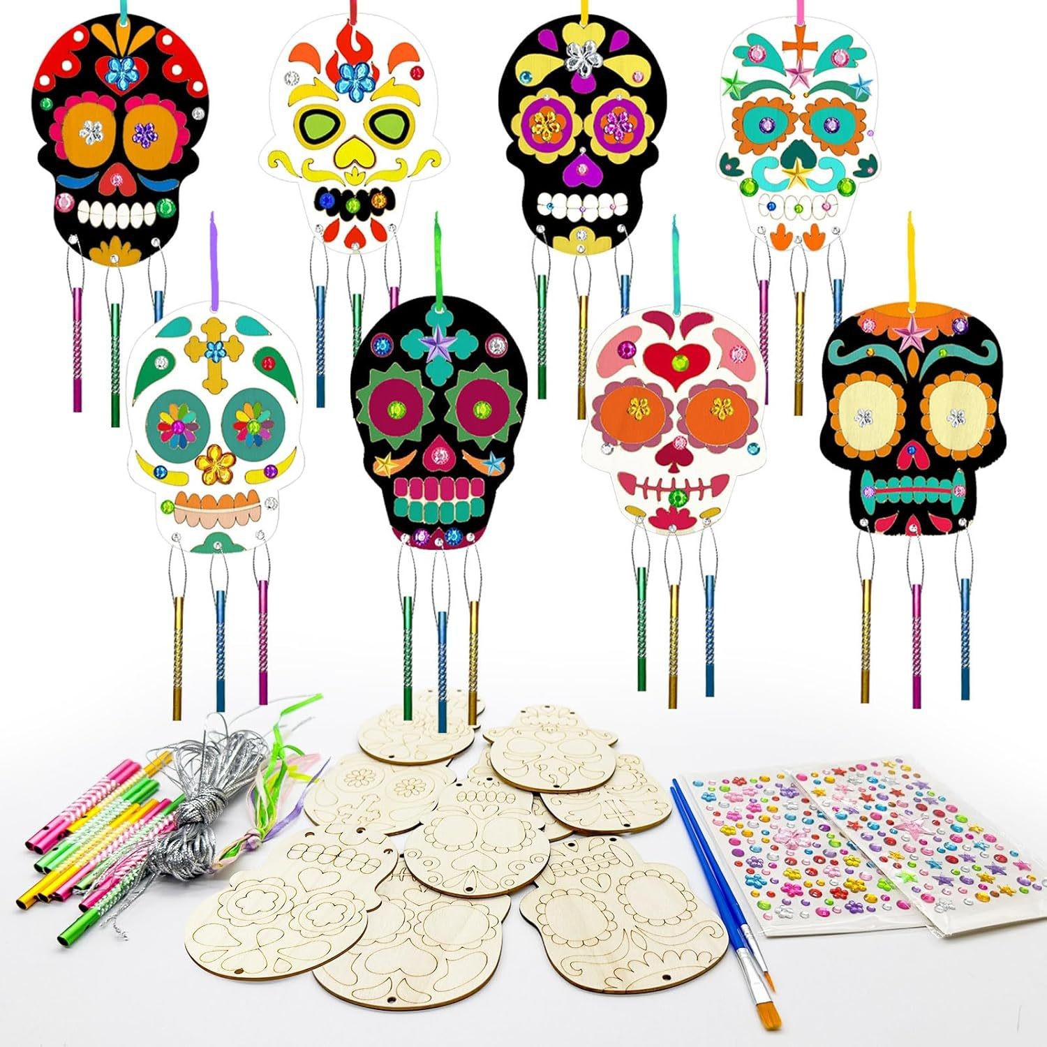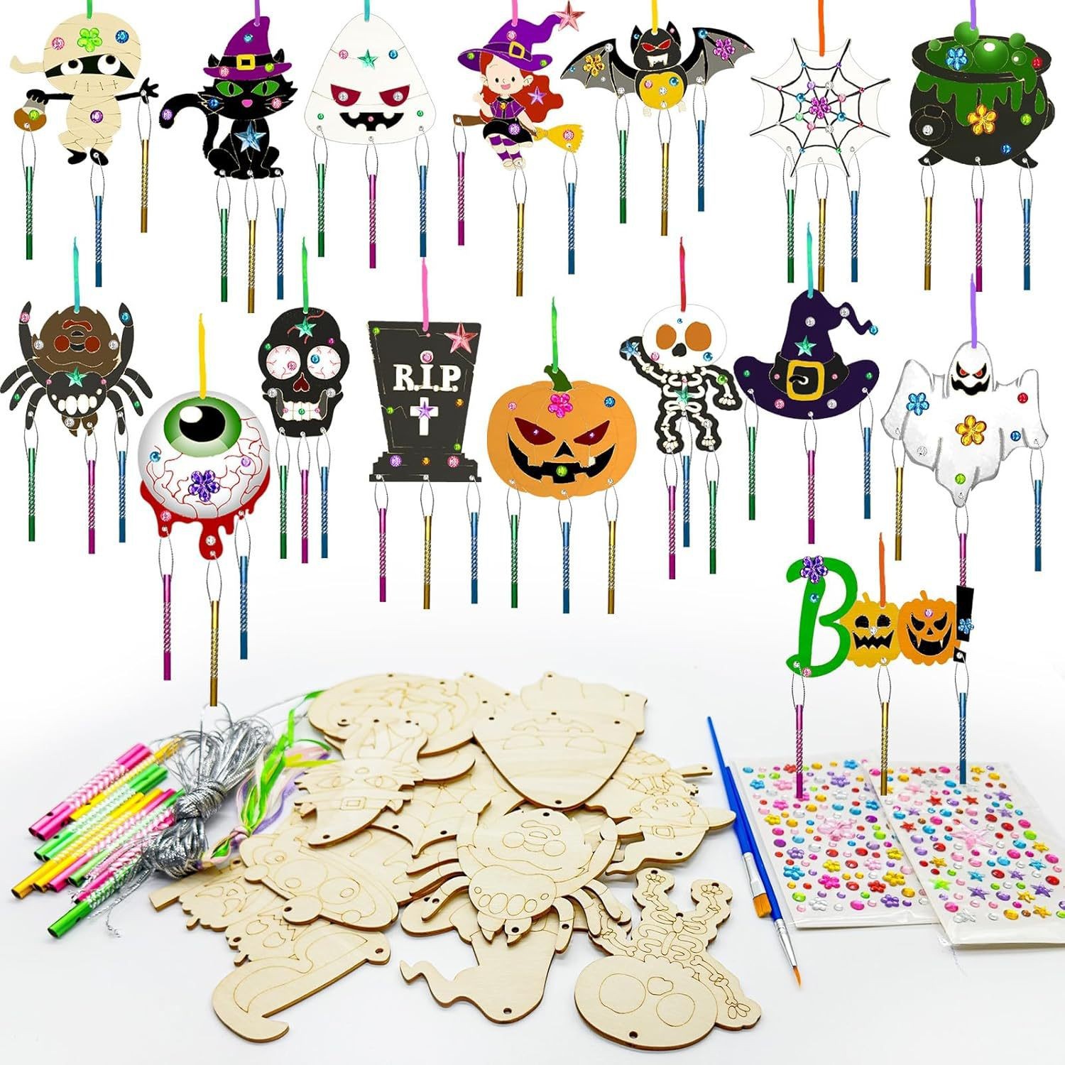 cross-border halloween wind chimes set diy graffiti wooden pumpkin spider bat skull party decoration supplies