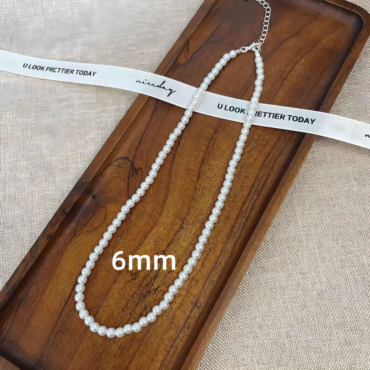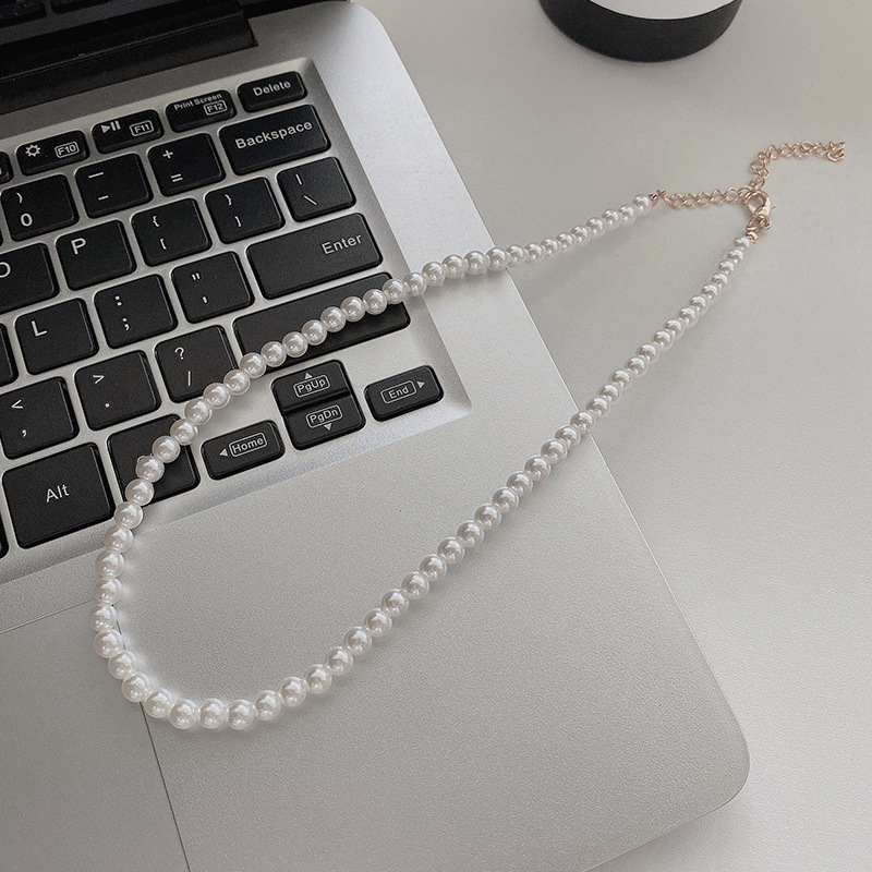 (合金款)6MM-银色尾链珍珠项链
