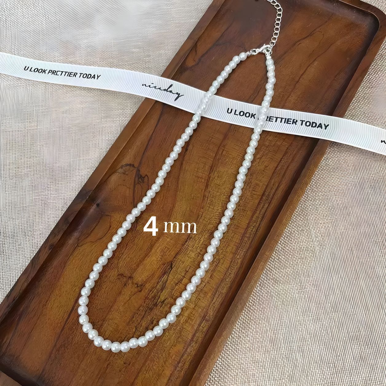 (合金款)4MM-银色尾链珍珠项链