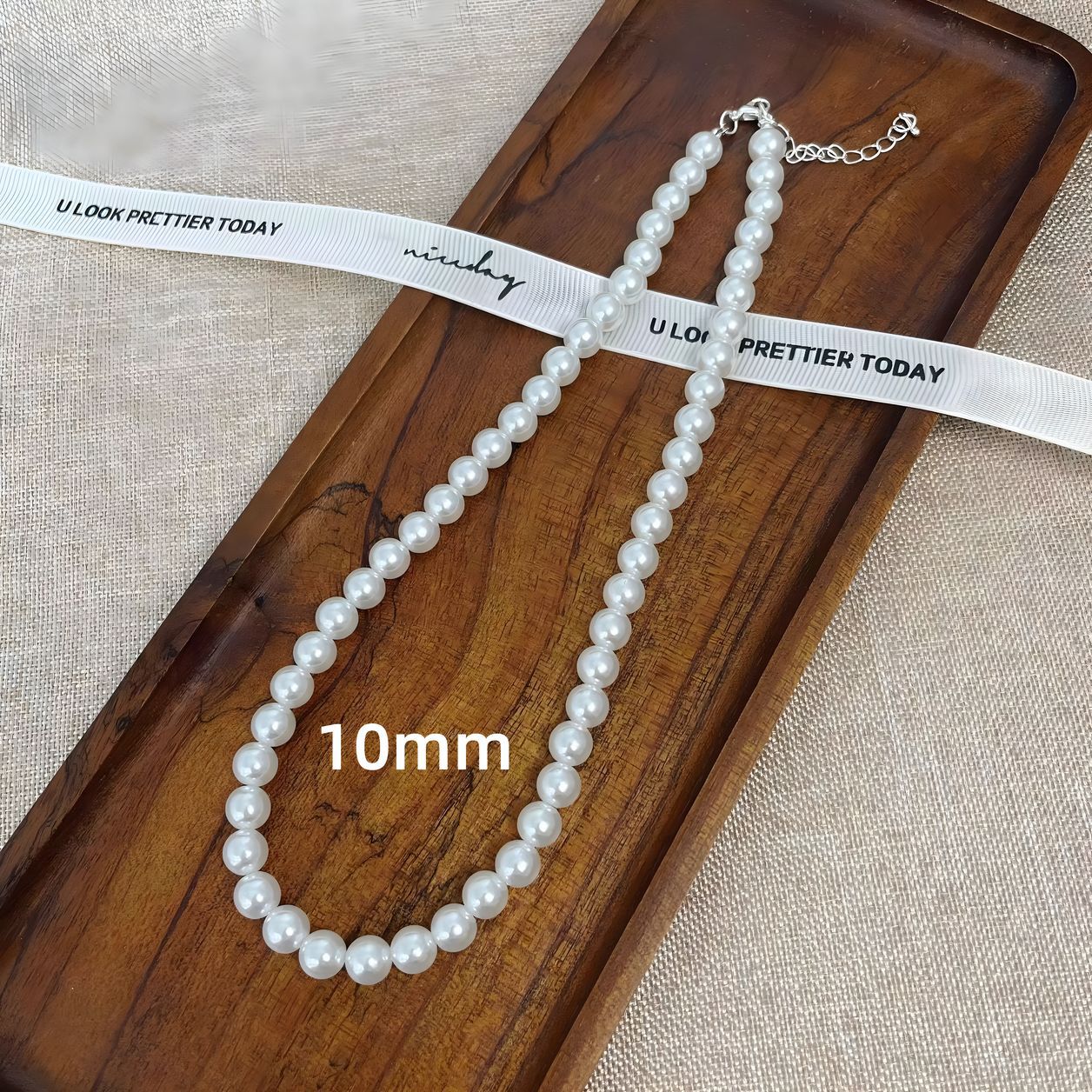 (合金款)10MM-银色尾链珍珠项链