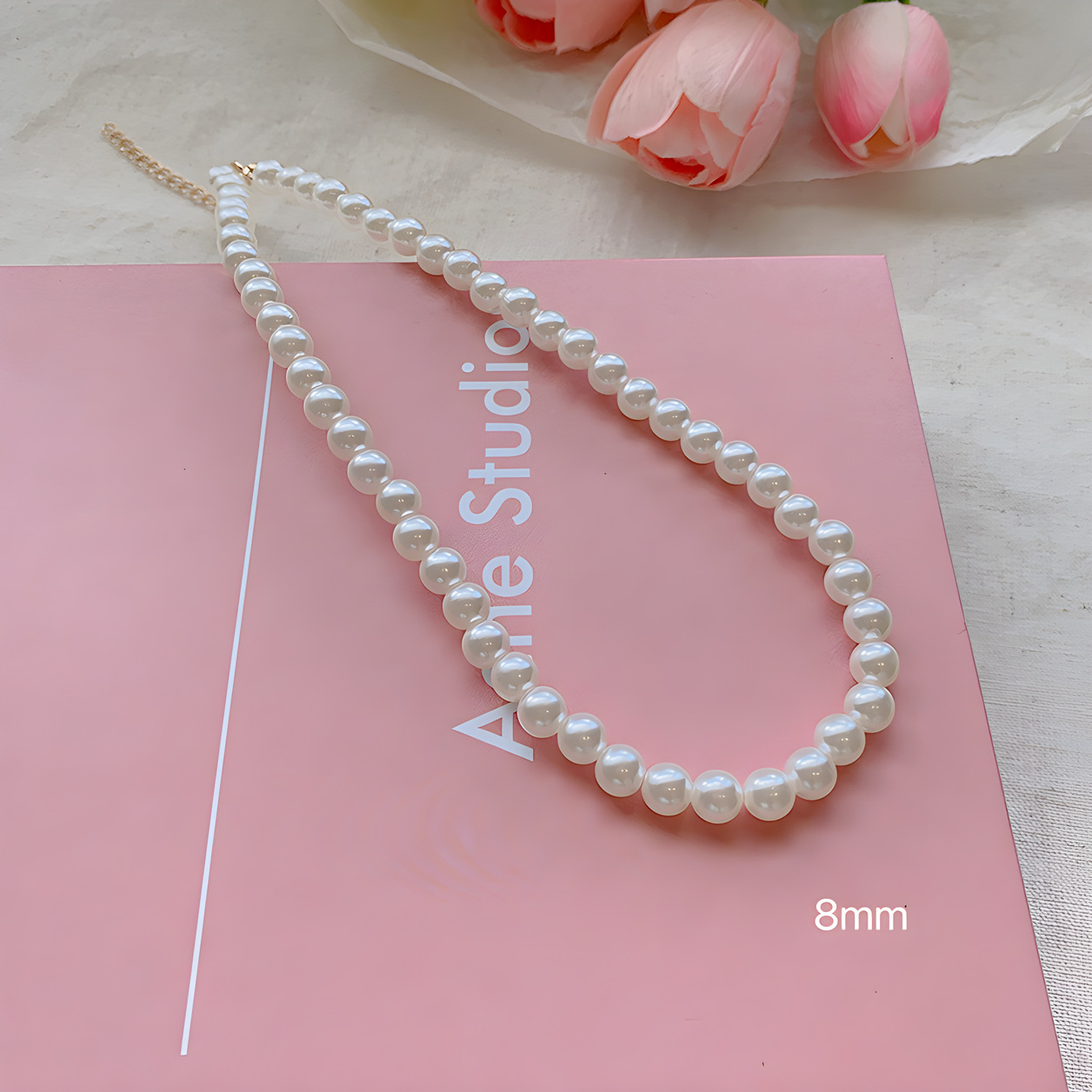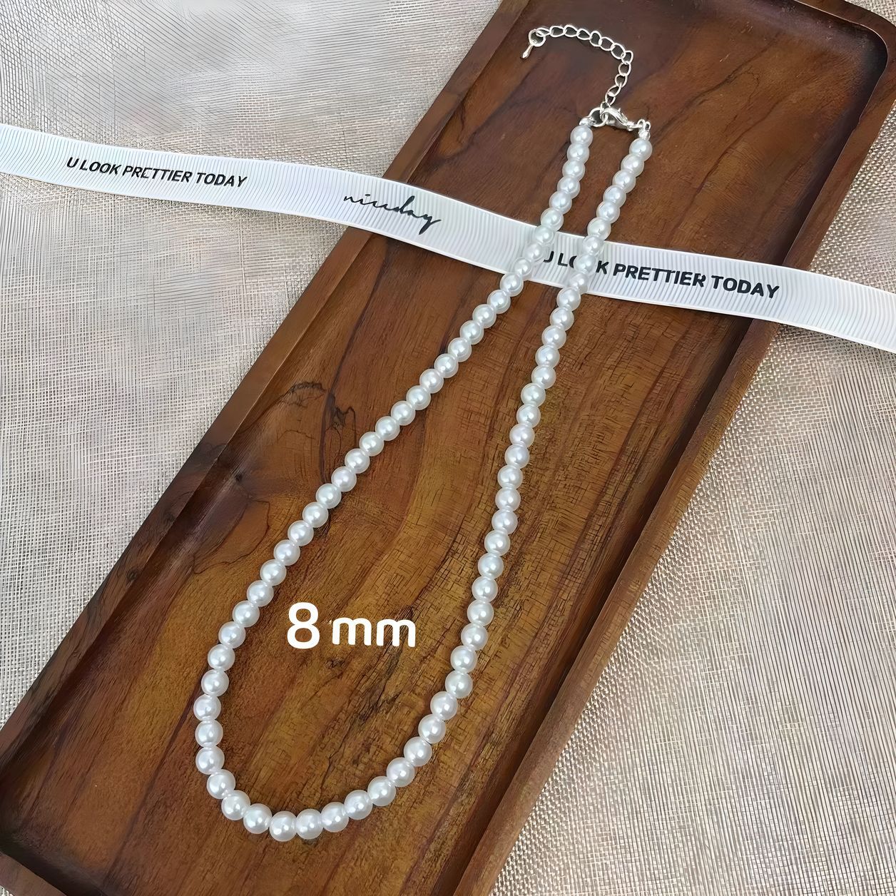 (合金款)8MM-银色尾链珍珠项链
