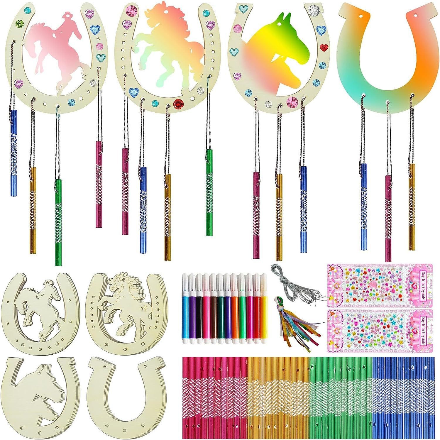 cross-border mandala wind chime: unfinished diy wooden spring animals wind chime craft, suitable for home decor