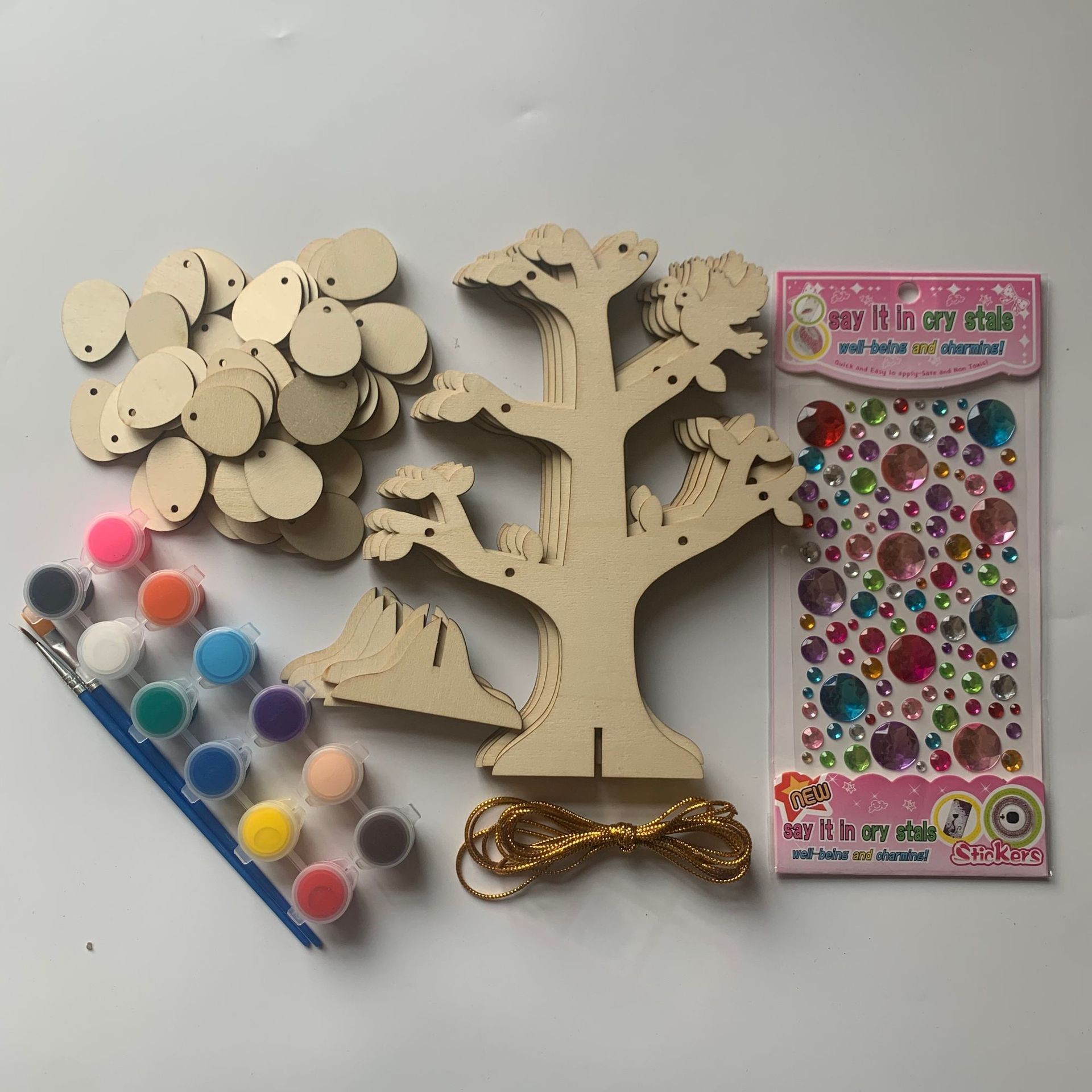 foreign trade hot-selling wooden assembled heart-shaped tree diy doodle children's educational creative toys 3d stereo desktop ornaments