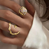 不规则月亮珍珠戒指 2件套 银色5628201