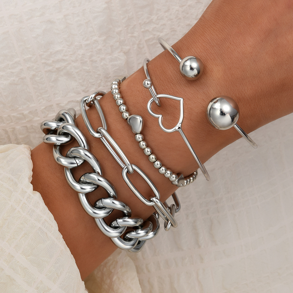 爱心粗链条手链 5件套6565201HB