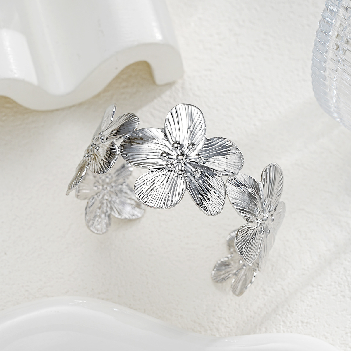 花朵开口手镯 银色6464902HB