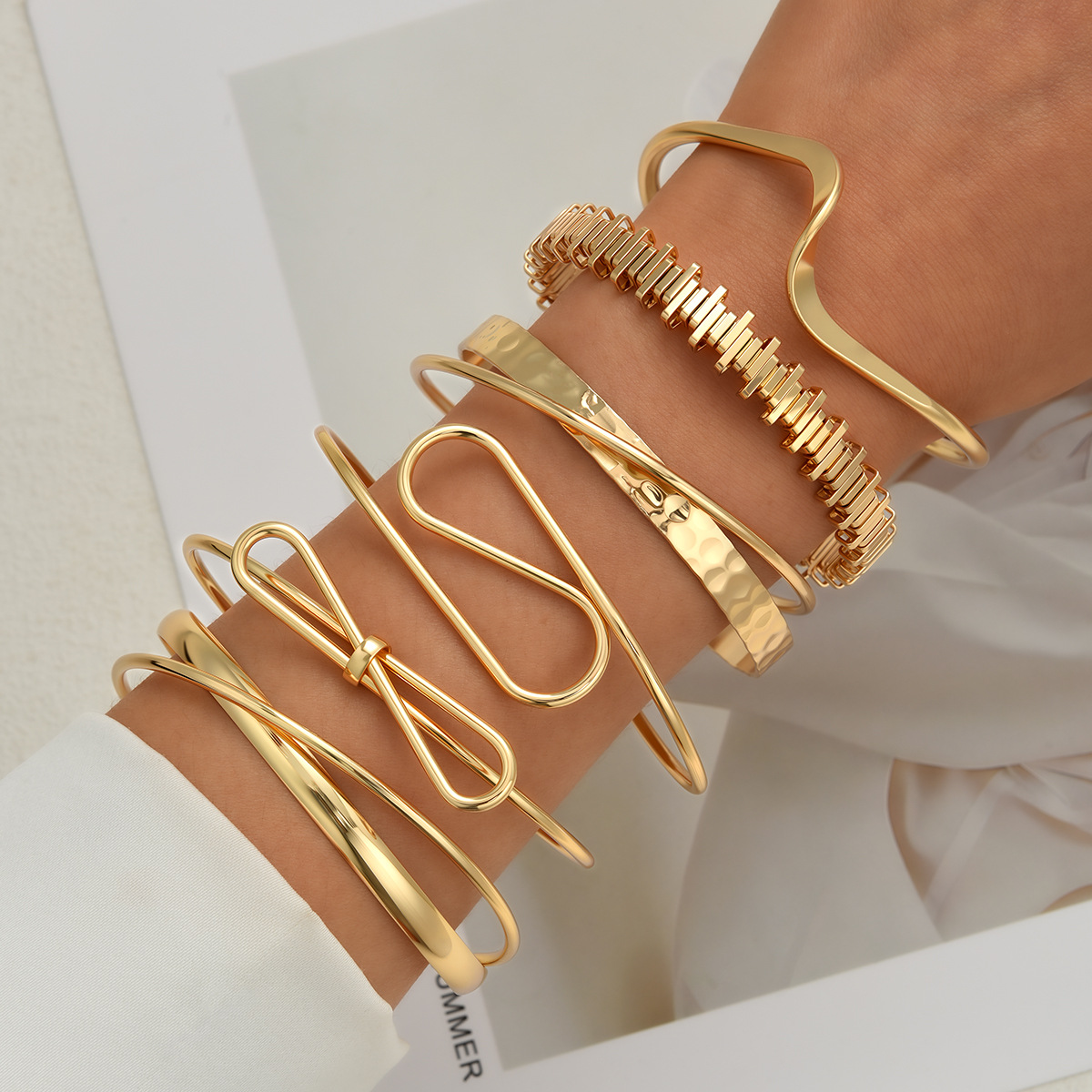 Cross-Border New Arrival Simple Niche Ins Design Cylindrical Irregular Bracelet Female Bow Bracelet 6-Piece Set Bracelet