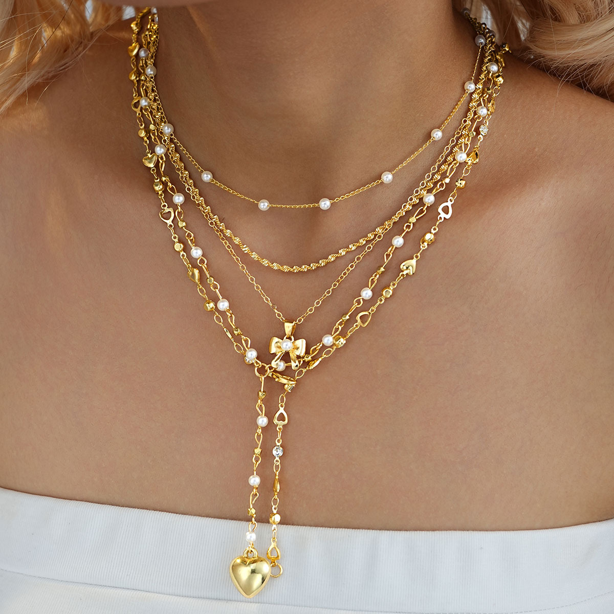 Y字蝴蝶结珍珠项链 5件套6605701HB