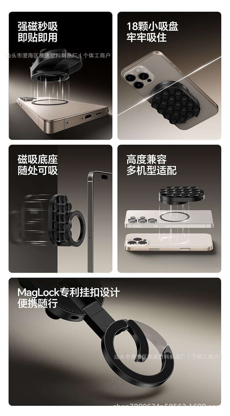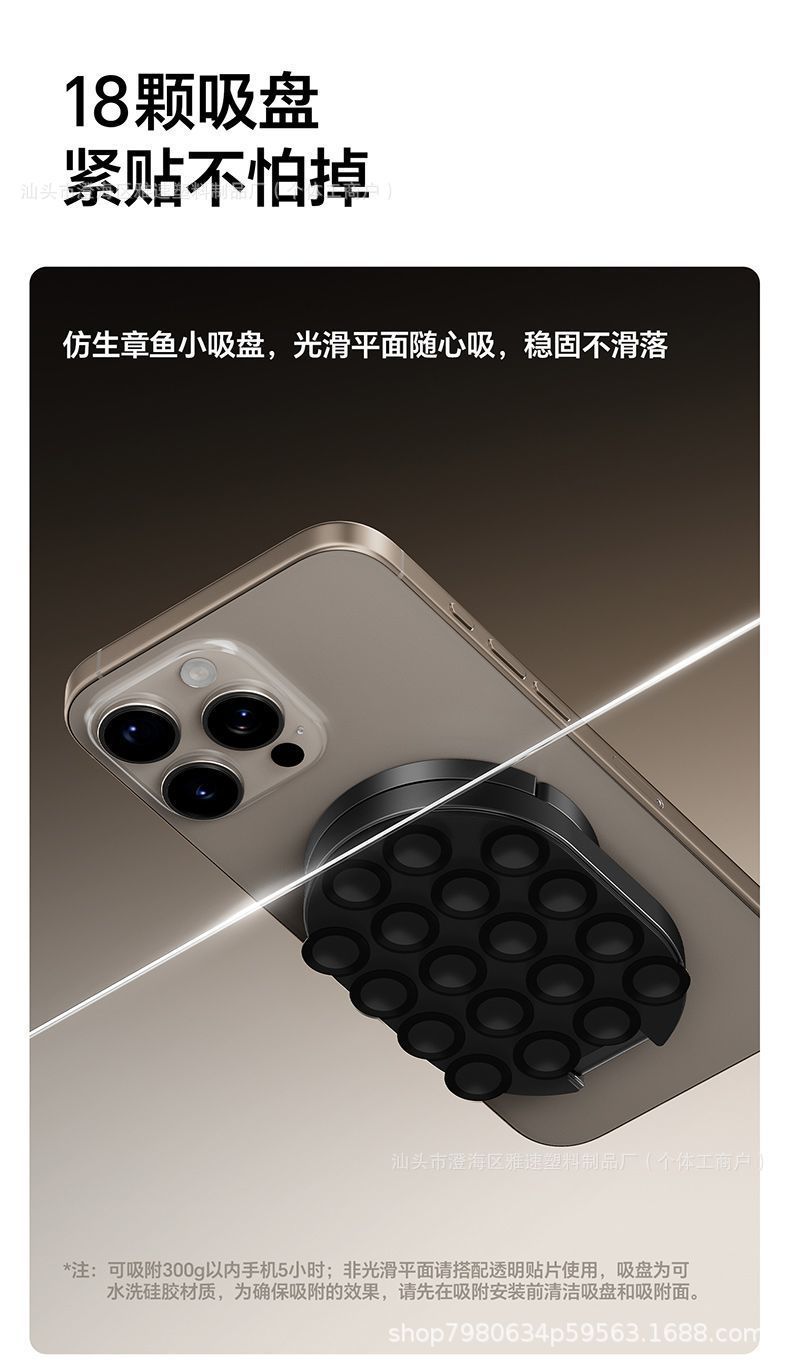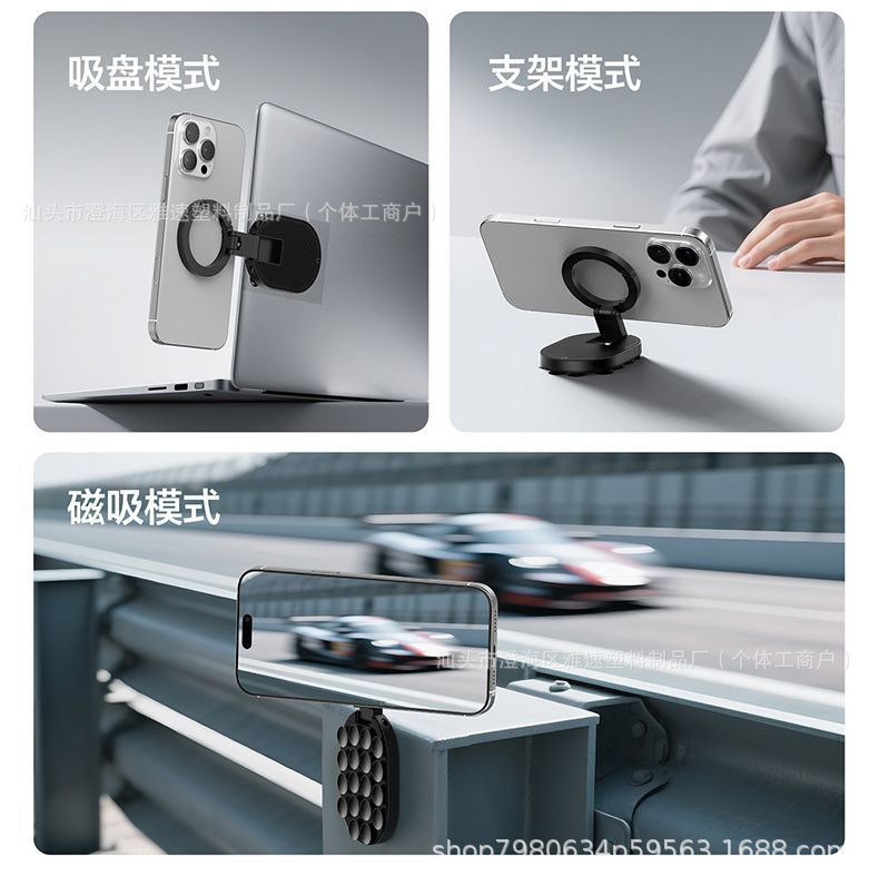 cross-border sucker magnetic suction climbing button carabiner mobile phone bracket folding rotating three-in-one multifunctional car mobile phone supporter