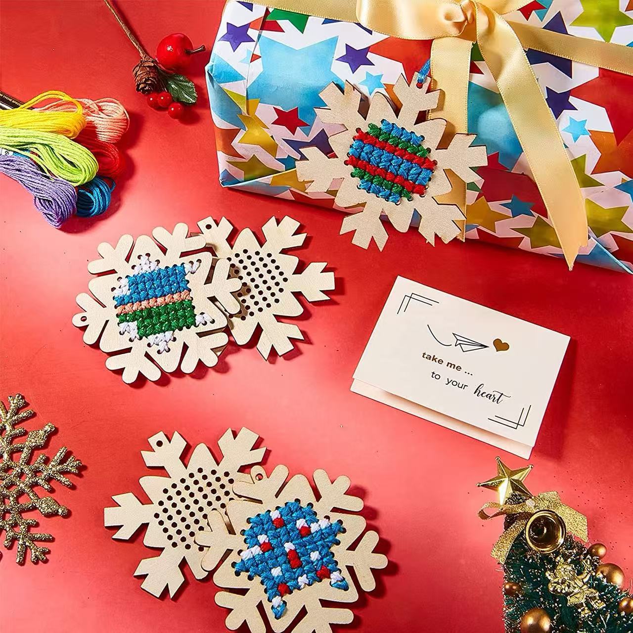 christmas wooden cross embroidery kits wooden snowflake christmas decorations christmas crafts suitable for children's diy projects