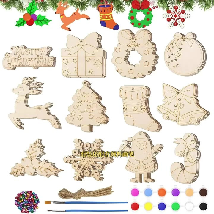 cross-border christmas set wooden unfinished wood piece wooden craftwork festive party pendant ornament diy