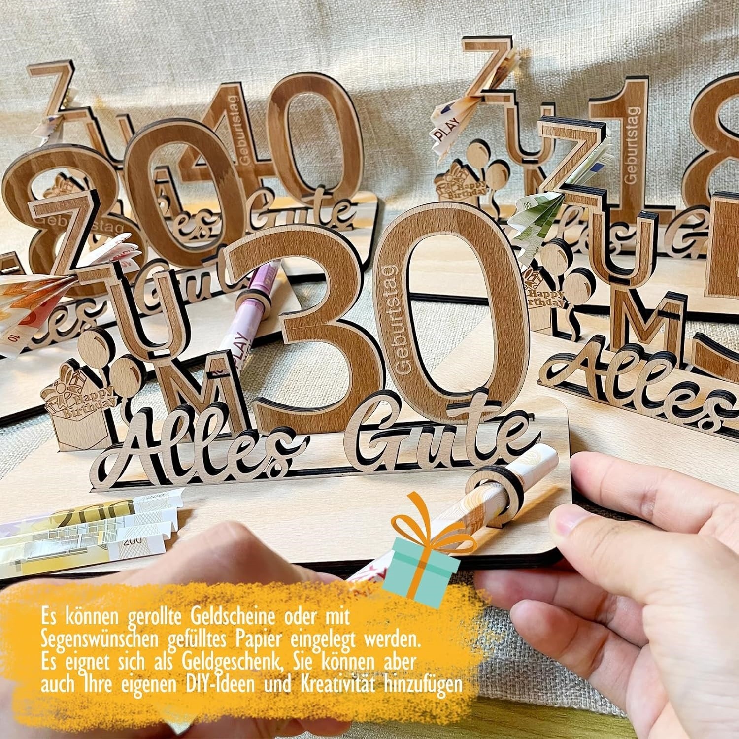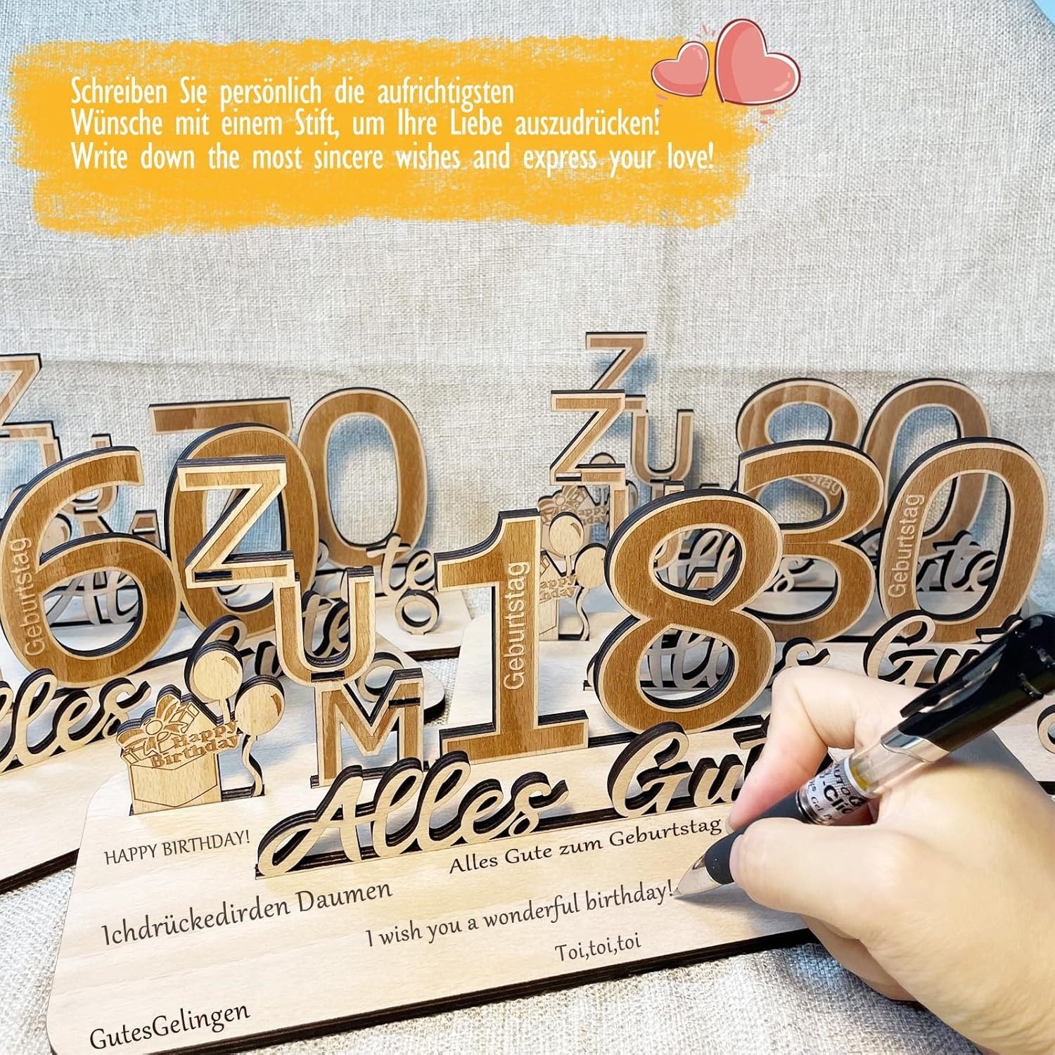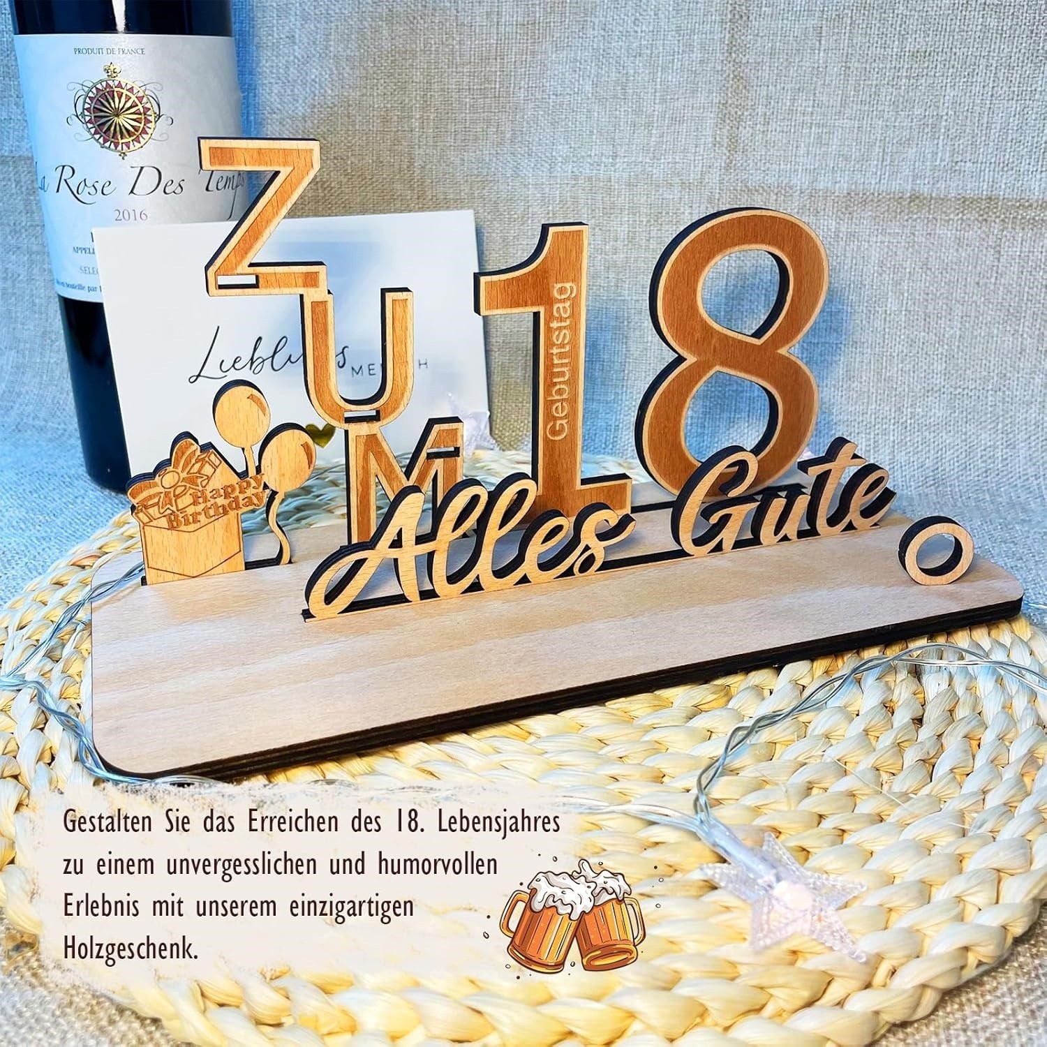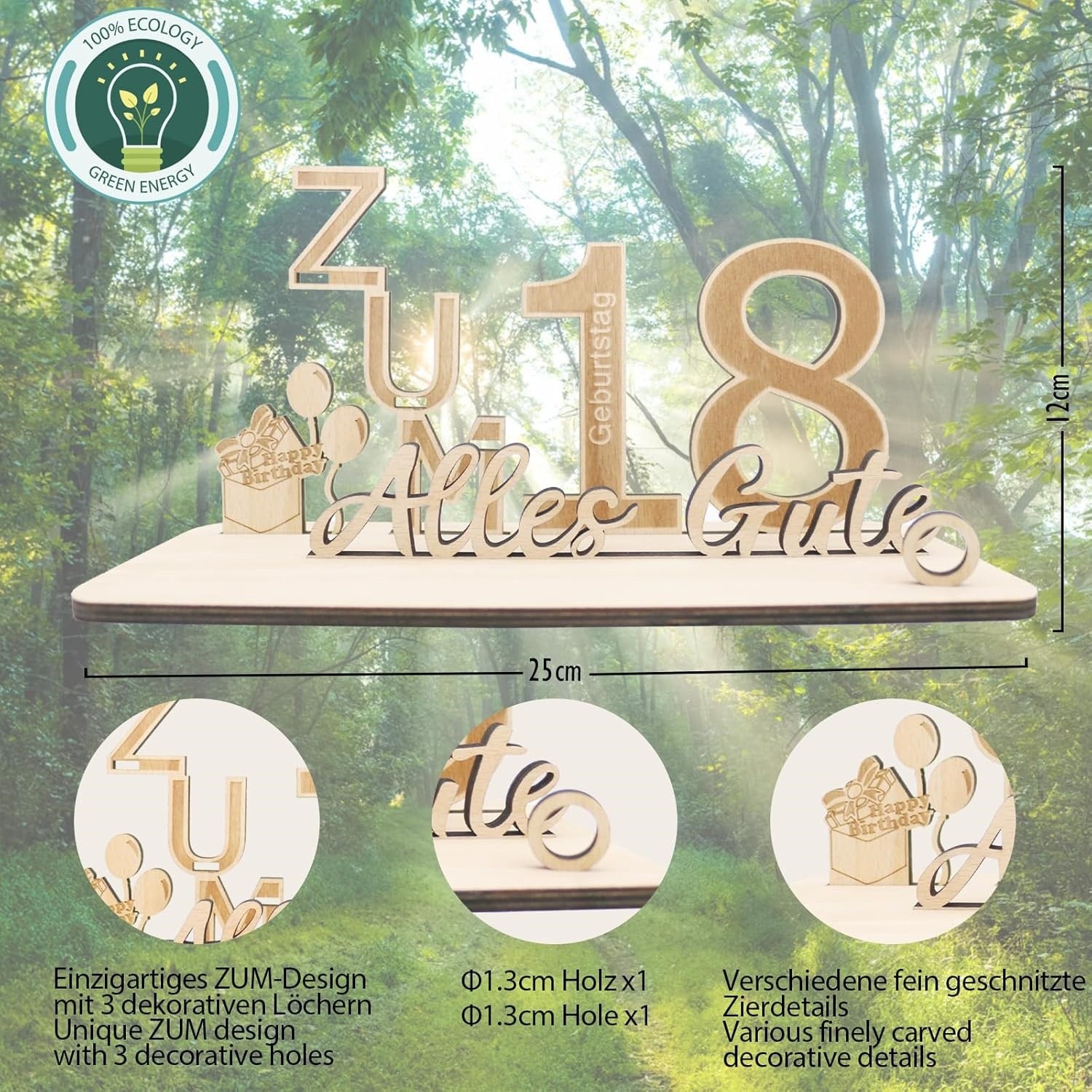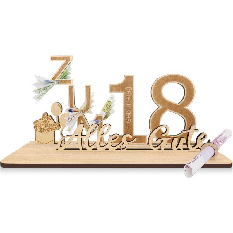 in stock, new arrival: happy 18th birthday decorations, german-language party greeting gift set, wooden ornaments, wooden crafts.