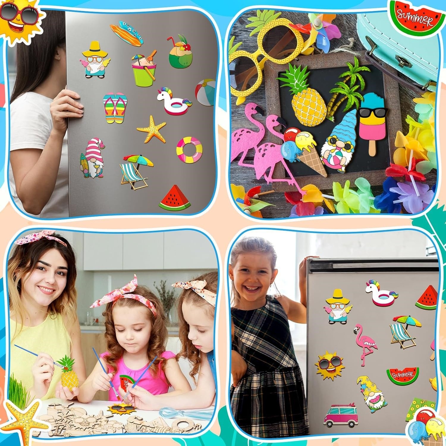 cross-border children's painting diy refridgerator magnets magnetic wood piece handmade painting wooden crafts