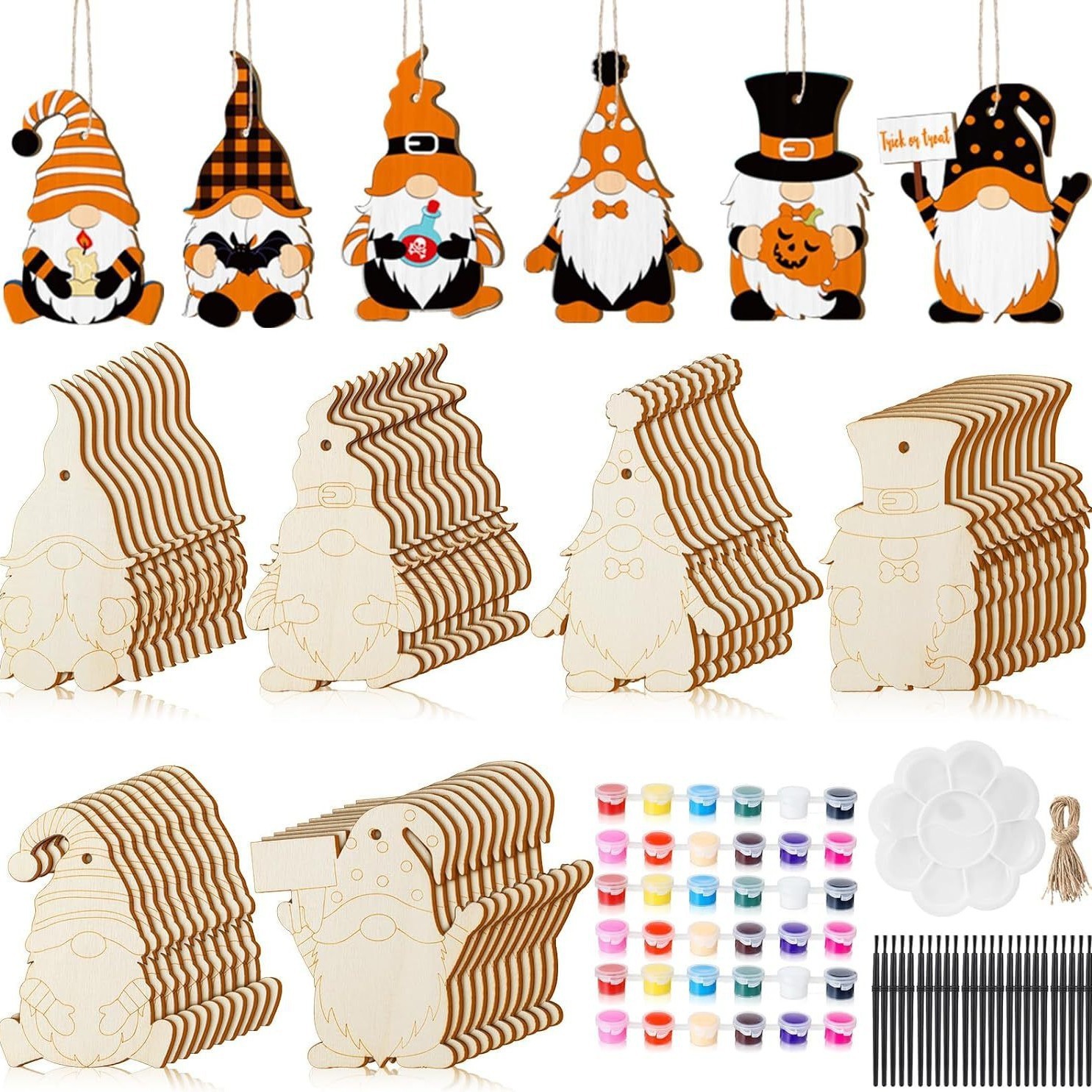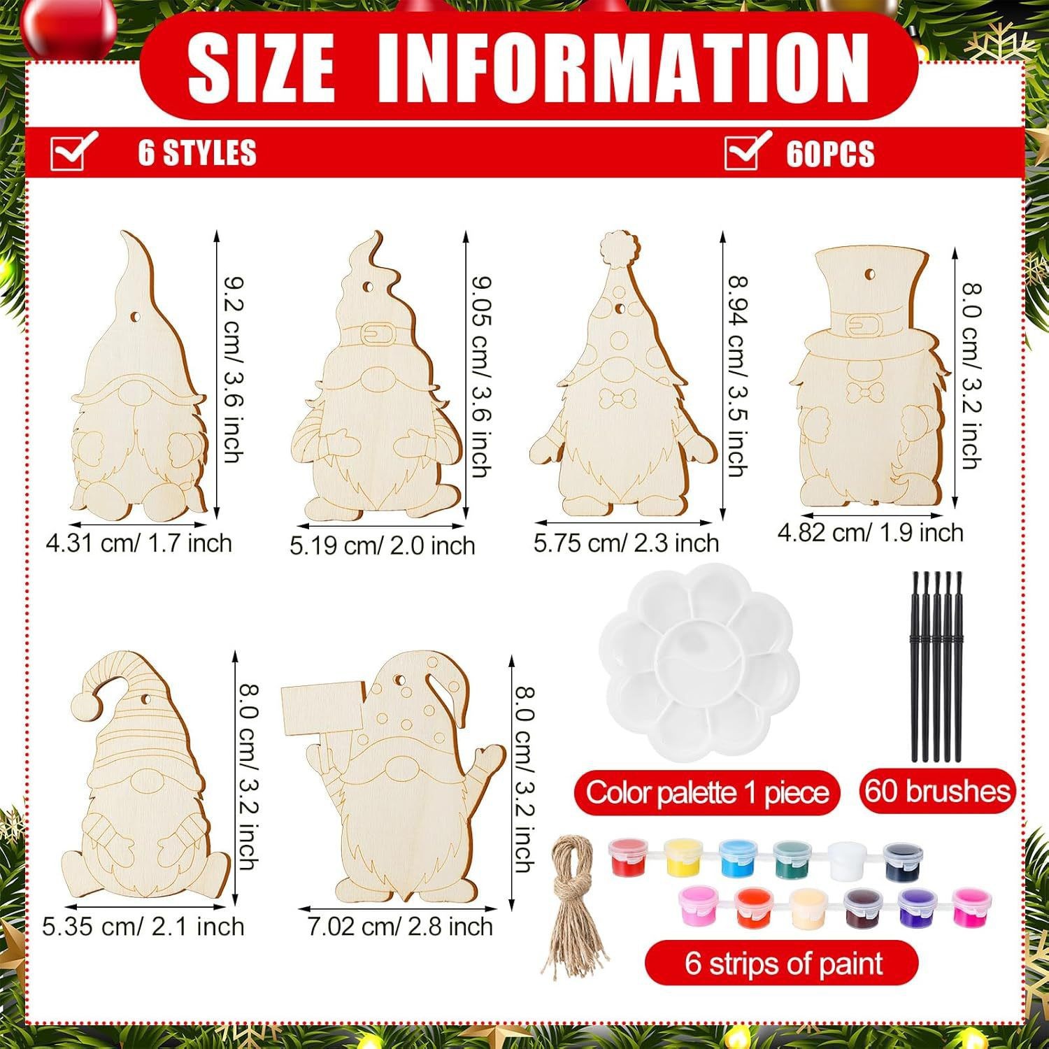 60 pieces unfinished christmas wooden dwarf hanging ornaments with rope for christmas diy painting home decoration