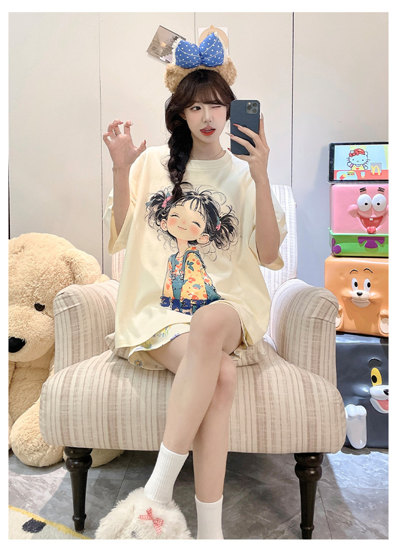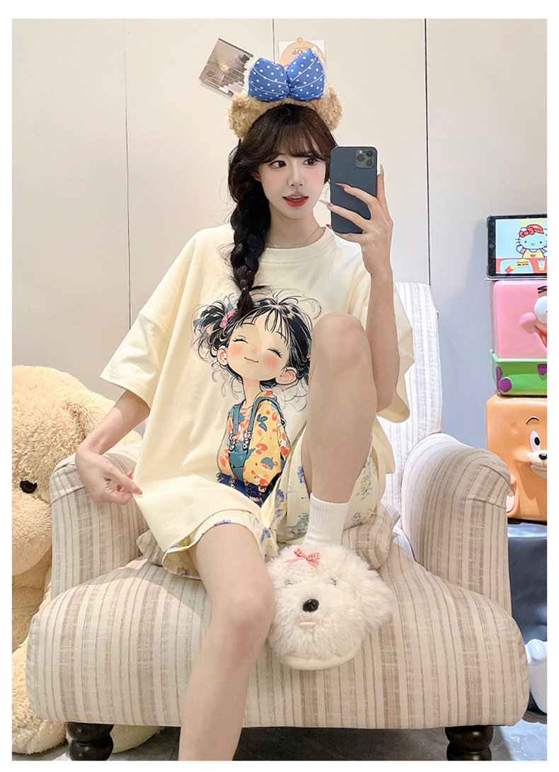 pajamas women's short-sleeved shorts sweet cartoon two-dimensional animation girl student homewear women's suit foreign trade wholesale