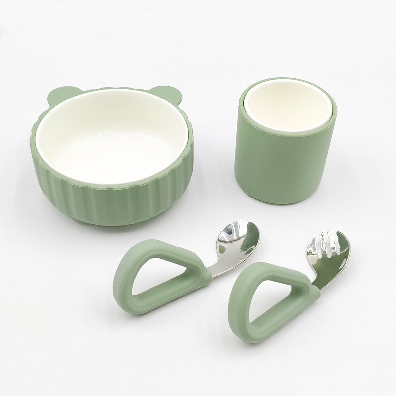 olive green (4-piece bear bowl set, no suction cups)