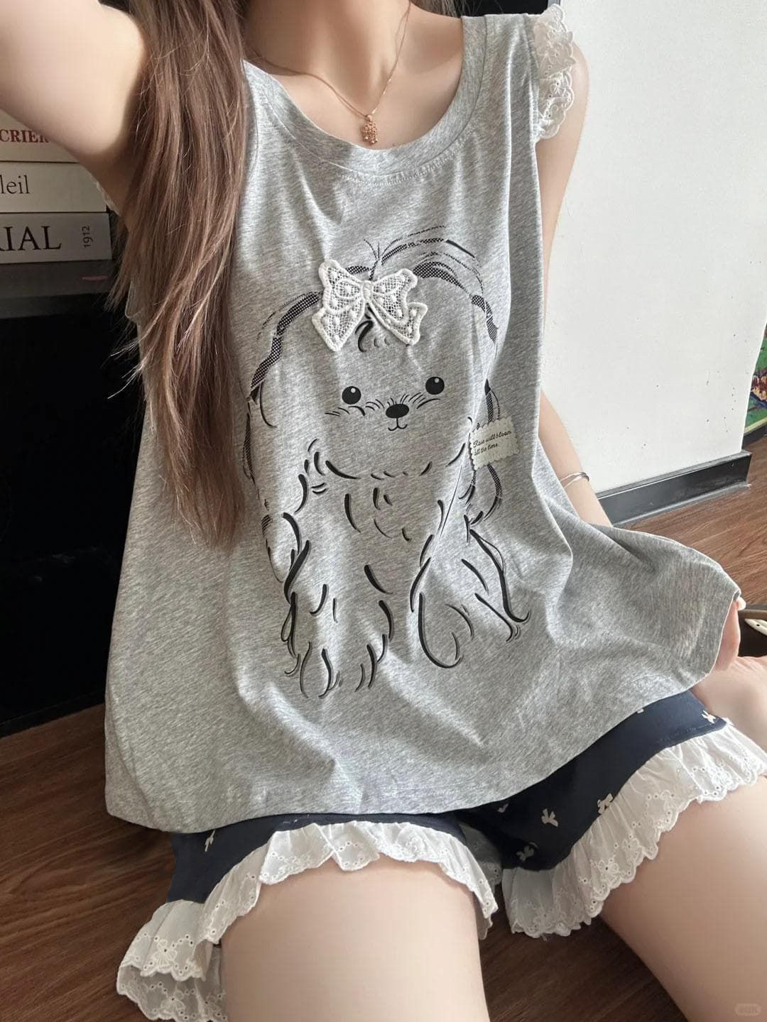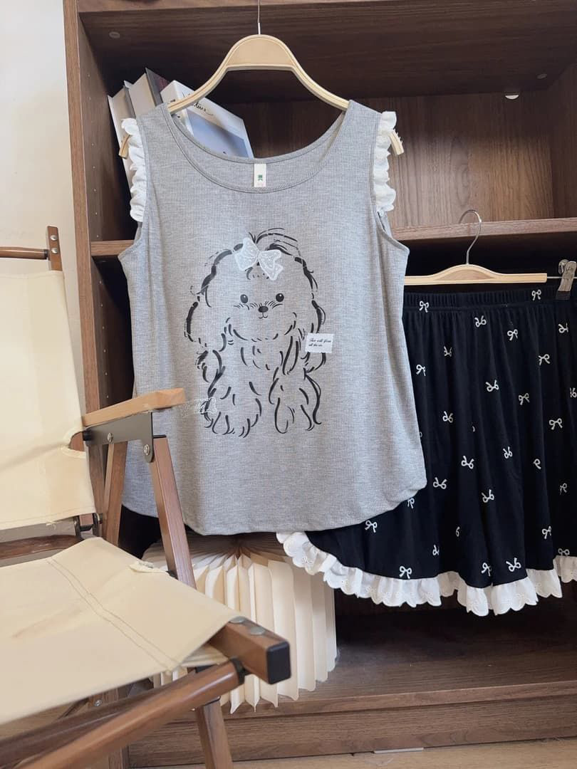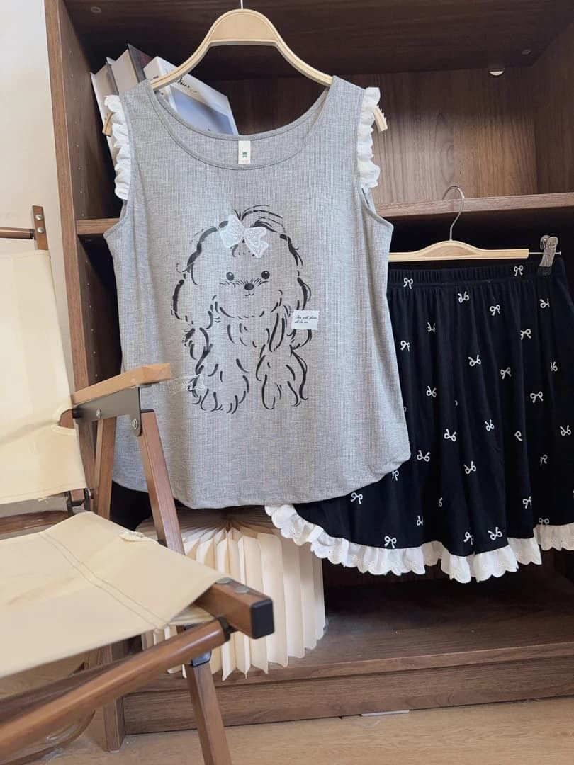 4644# gray puppy bow set