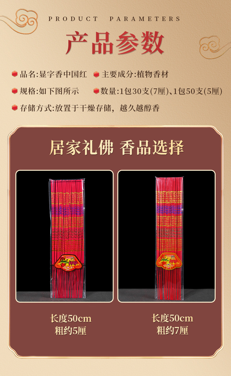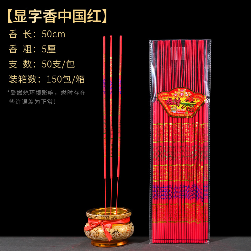 light smoke character display incense stick chinese red 50 sticks 5 li 50cm