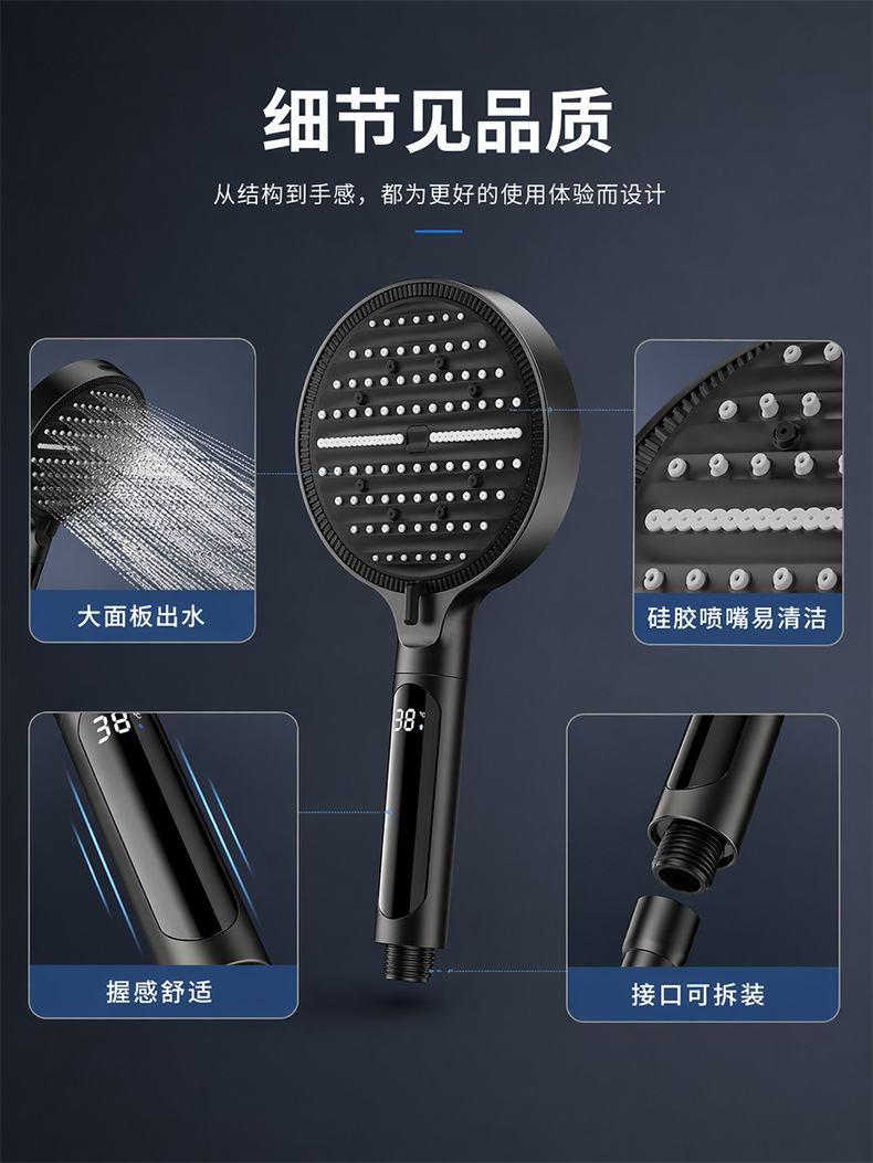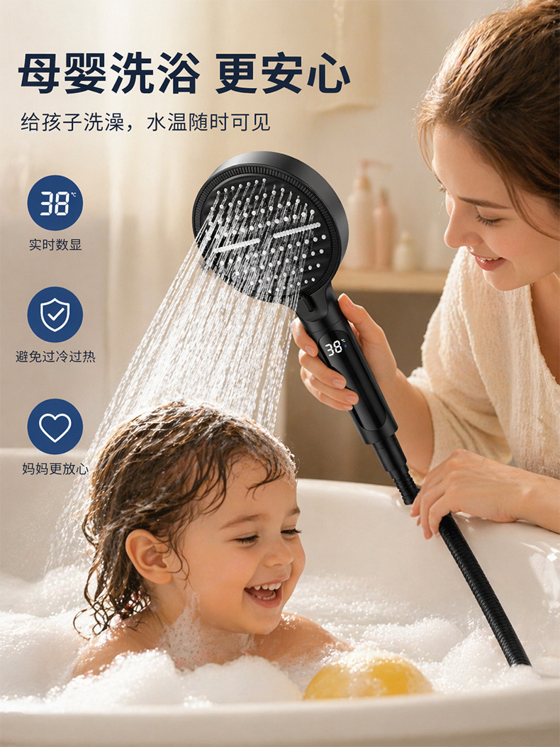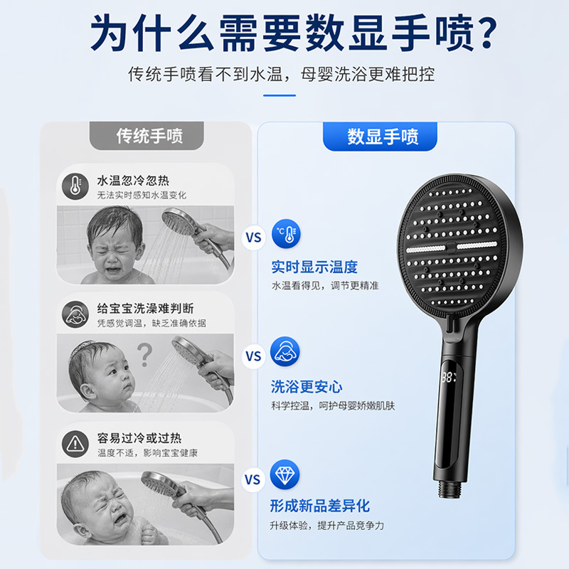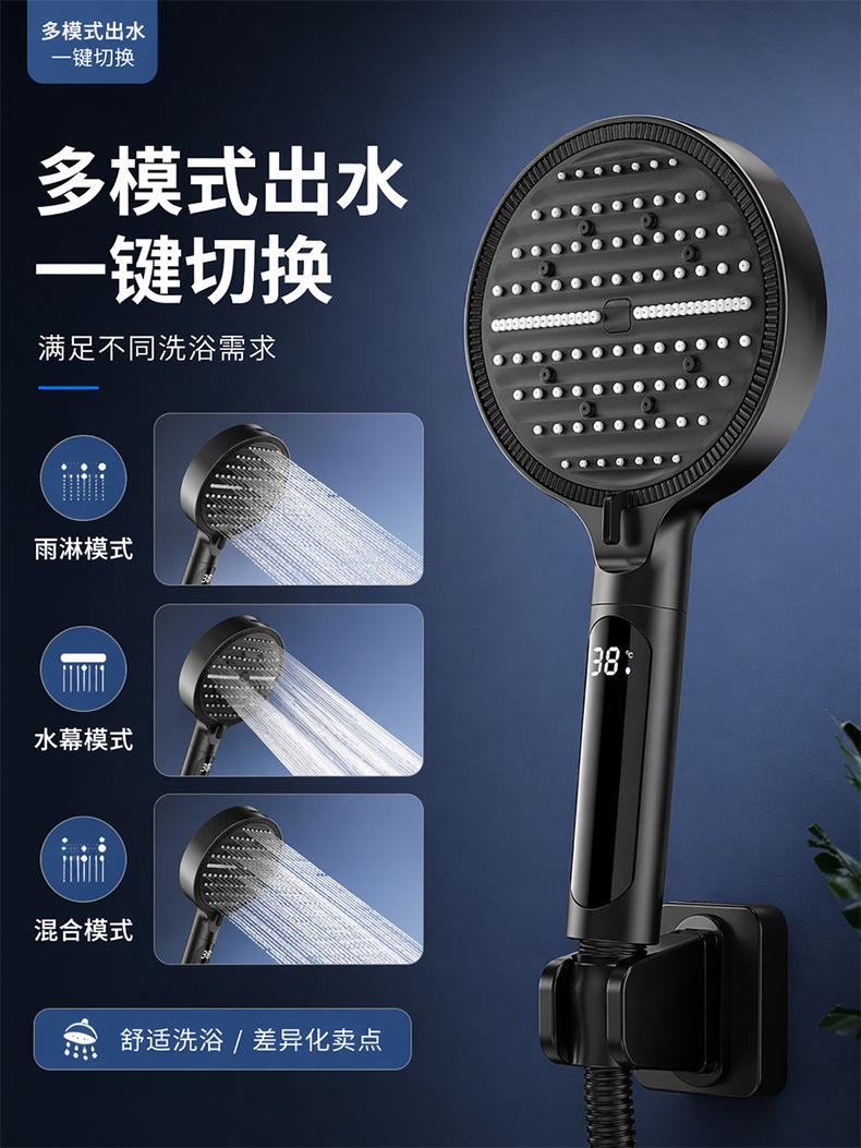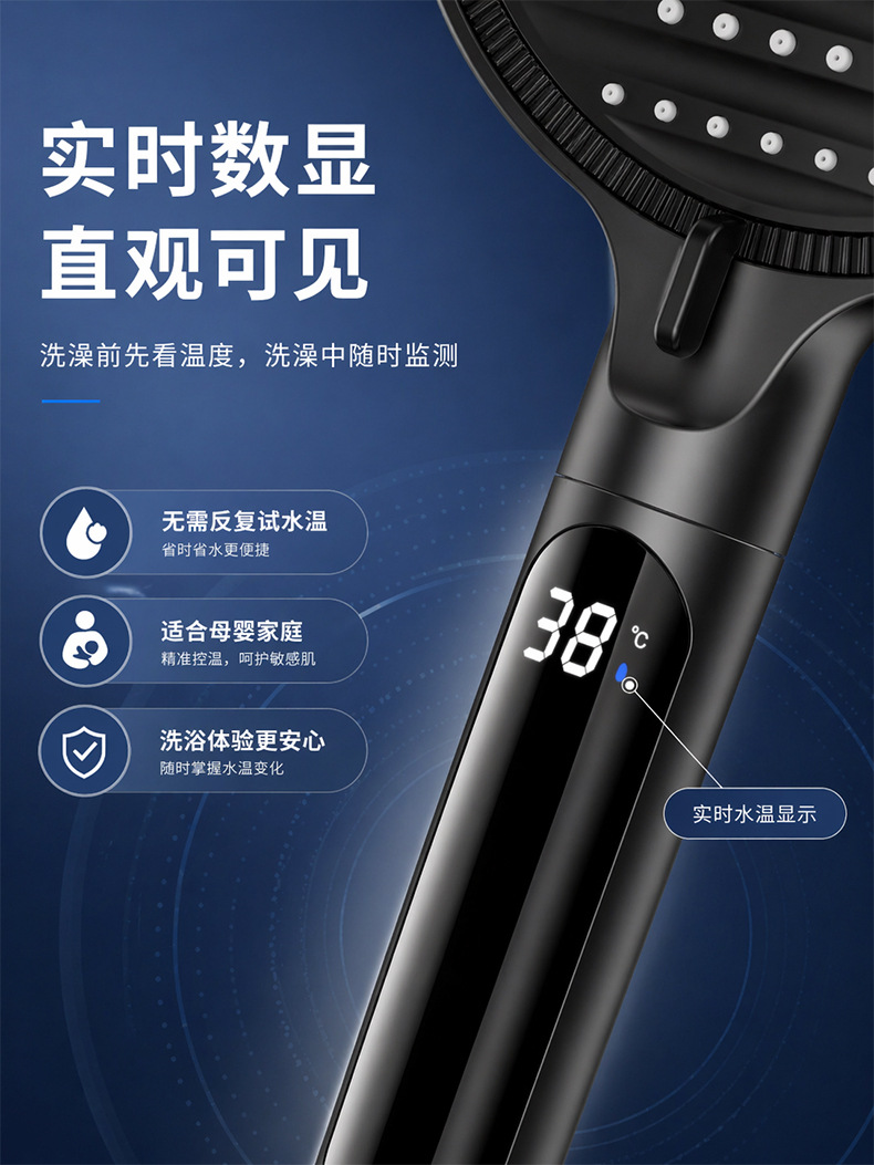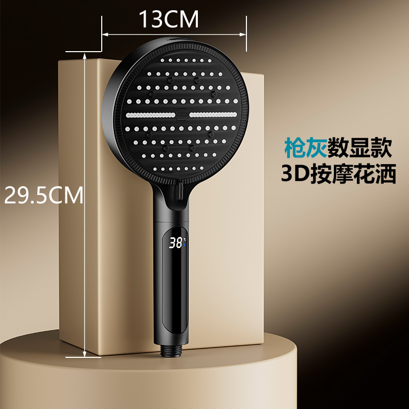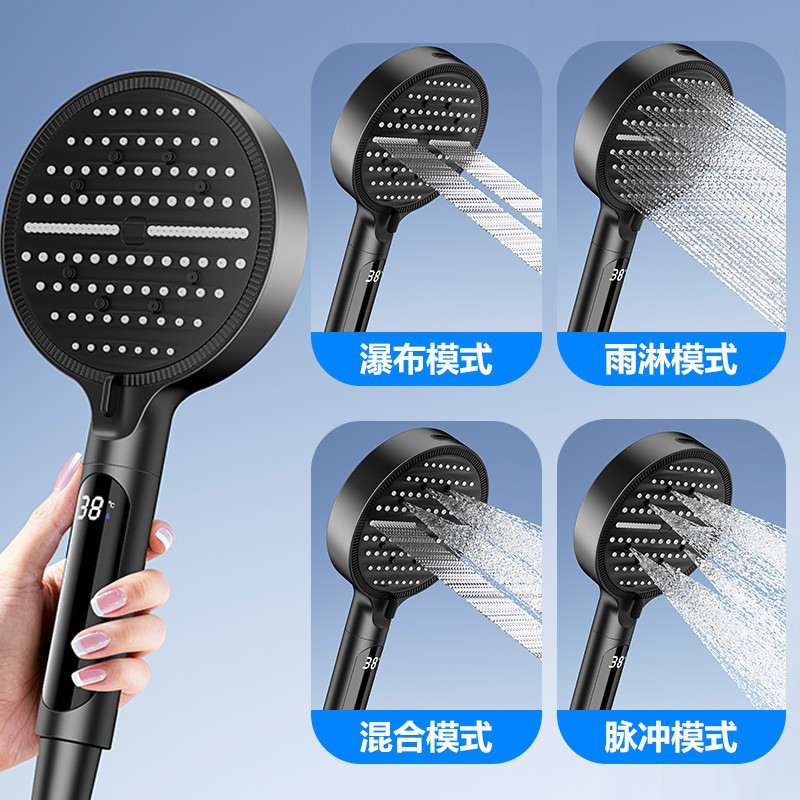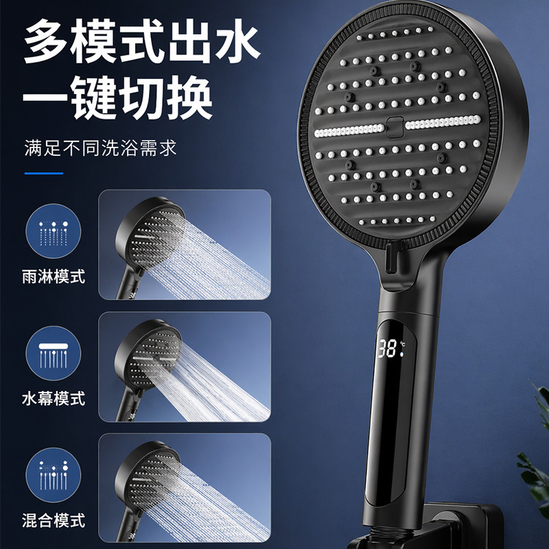 Digital display shower head, pressure-boosting shower head, large panel, handheld shower head, hand-held shower head, spray head, hand-held spray head, handheld spray head, shower set accessories, complete set of shower set, complete shower set, bathroom home shower, dormitory shower