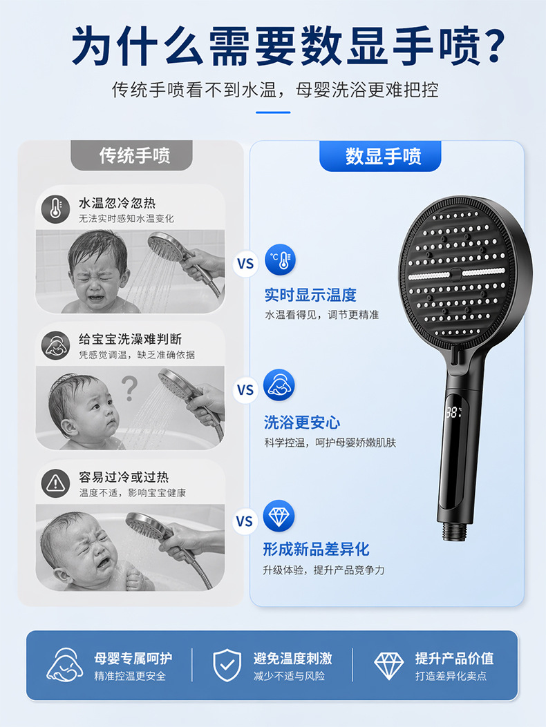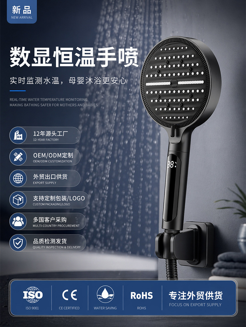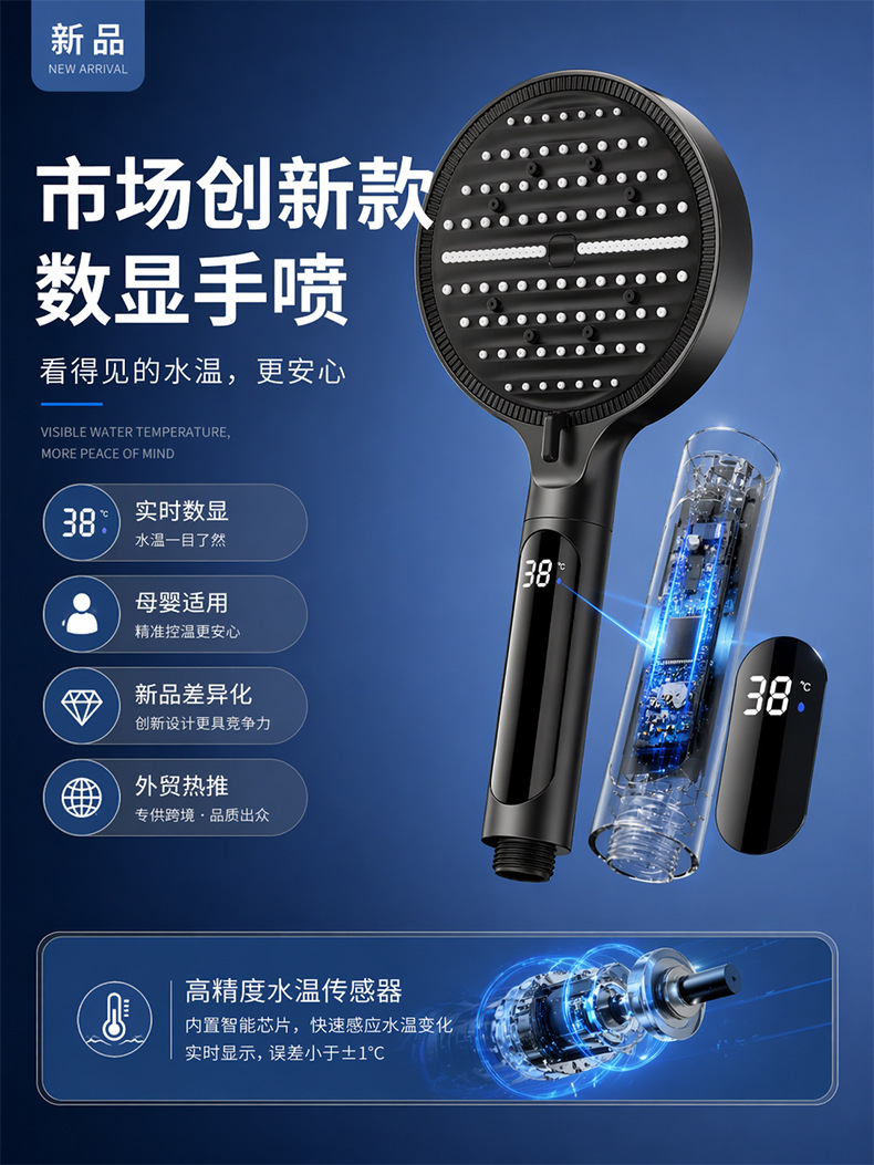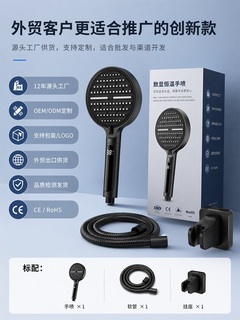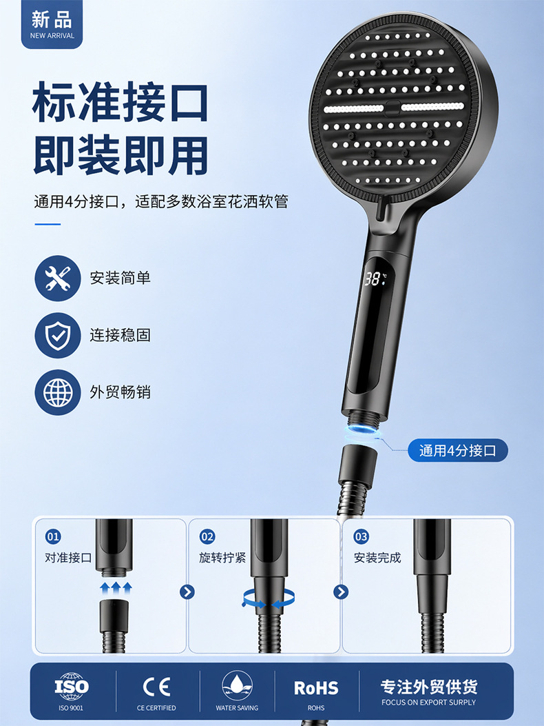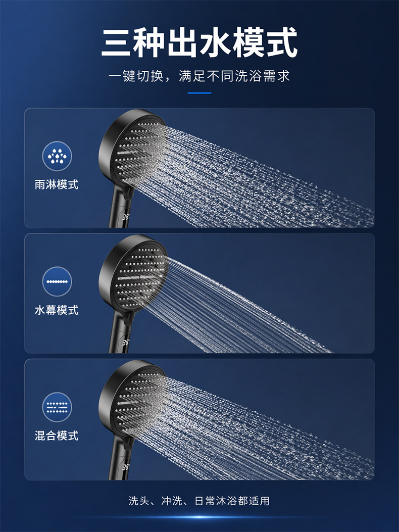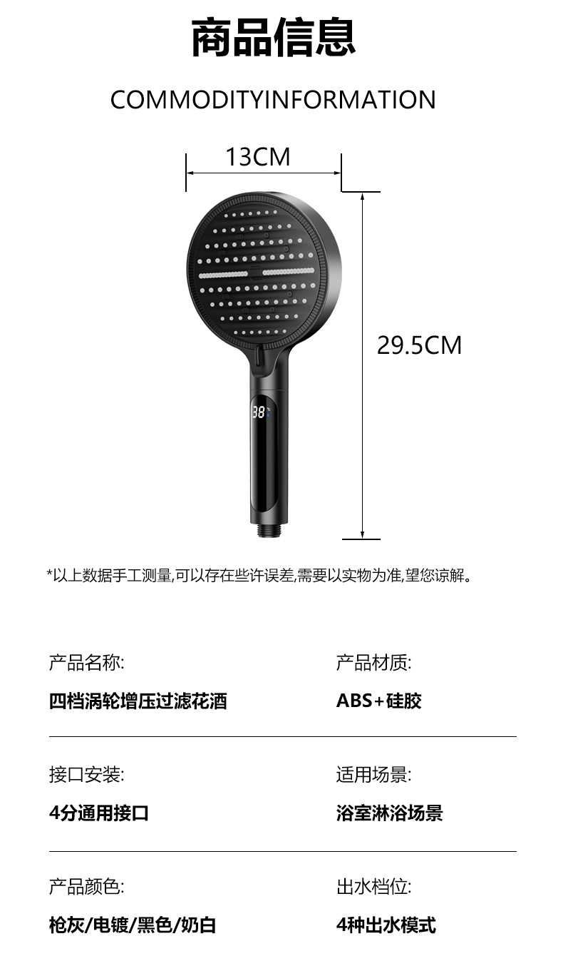 Digital display shower head, pressure-boosting shower head, large panel, handheld shower head, hand-held shower head, spray head, hand-held spray head, handheld spray head, shower set accessories, complete set of shower set, complete shower set, bathroom home shower, dormitory shower