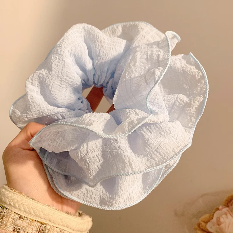 1# white pearl ruffled hair tie-20cm