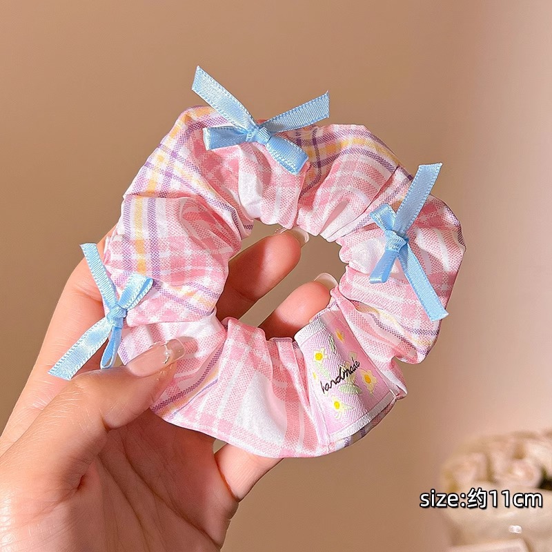 1# white plaid hair tie pink bow