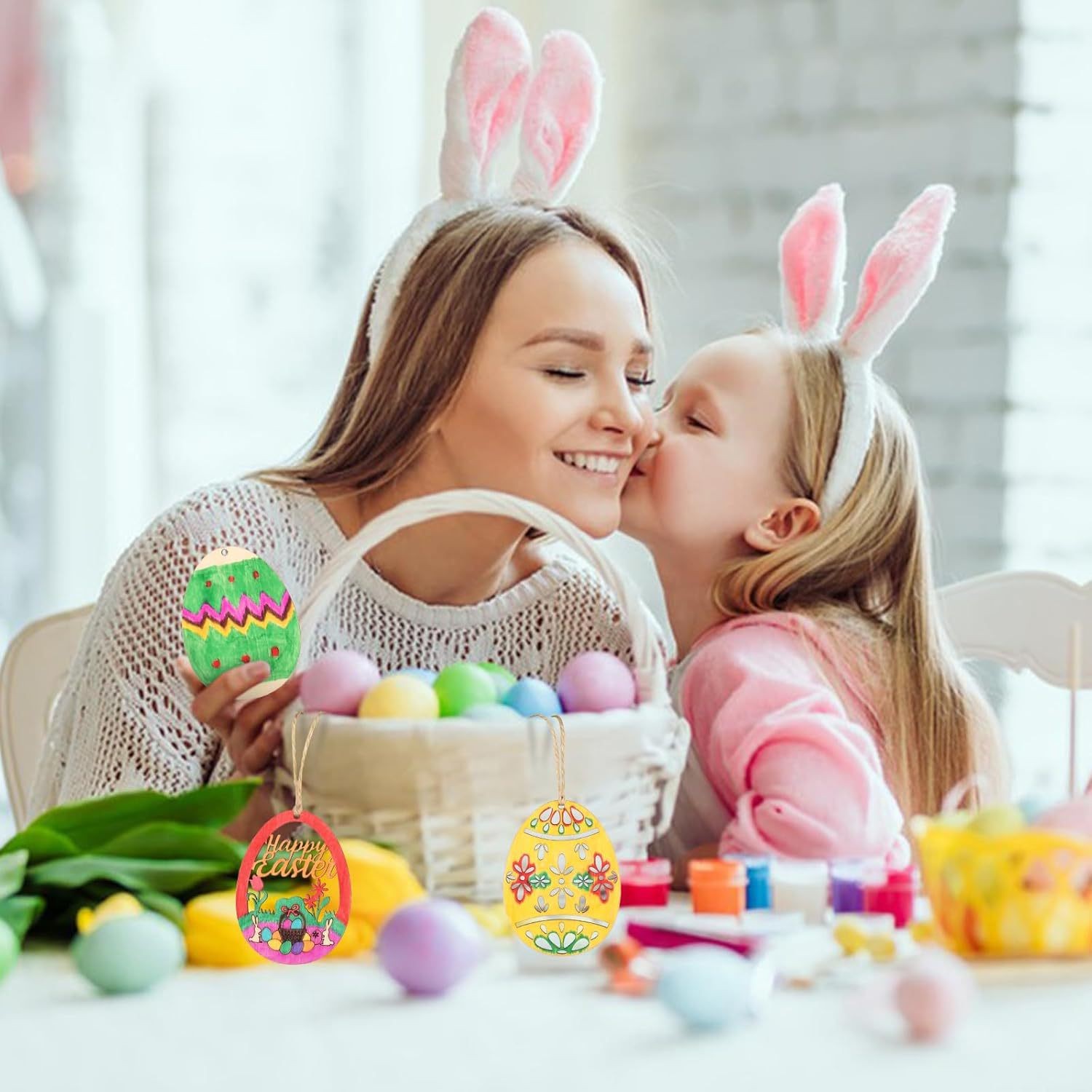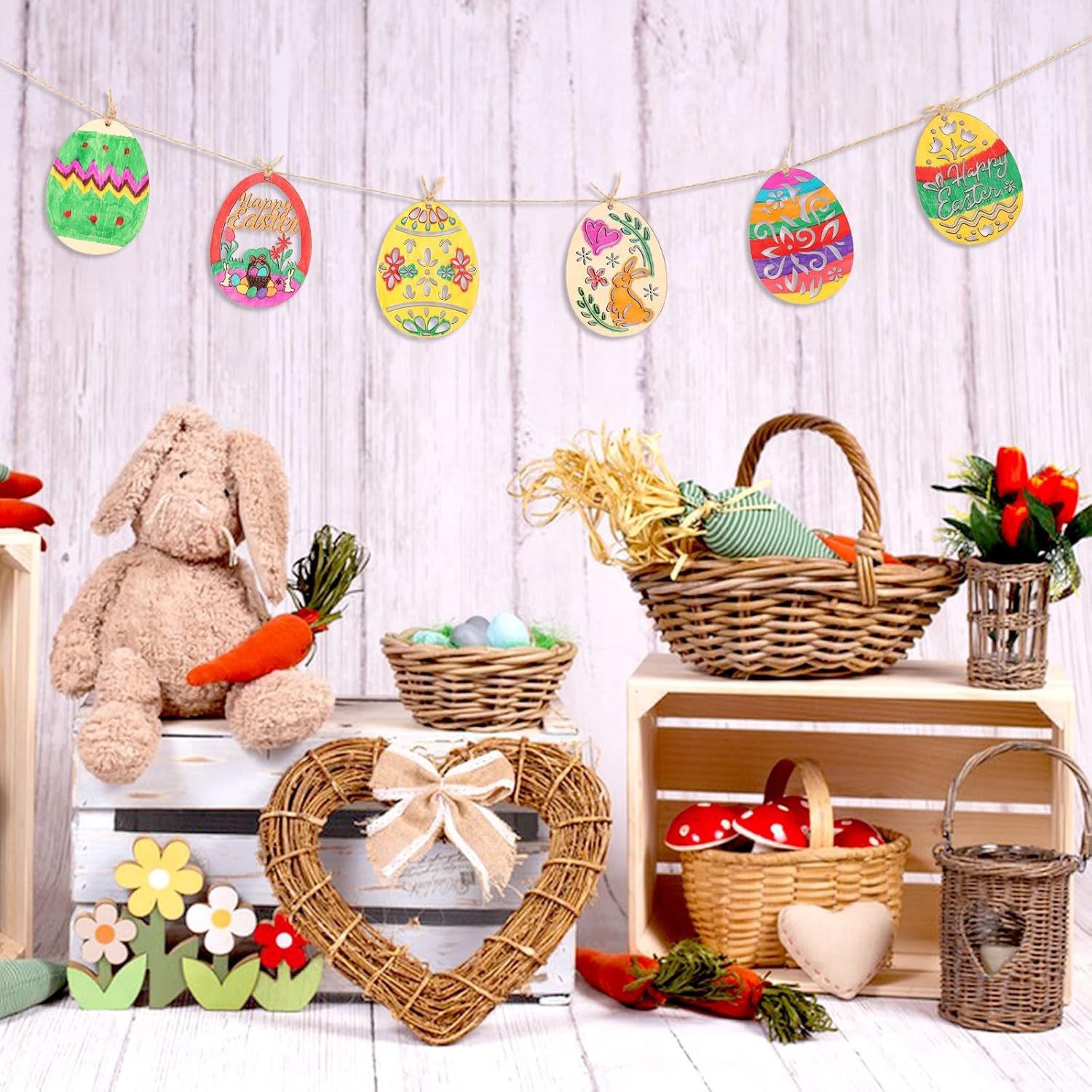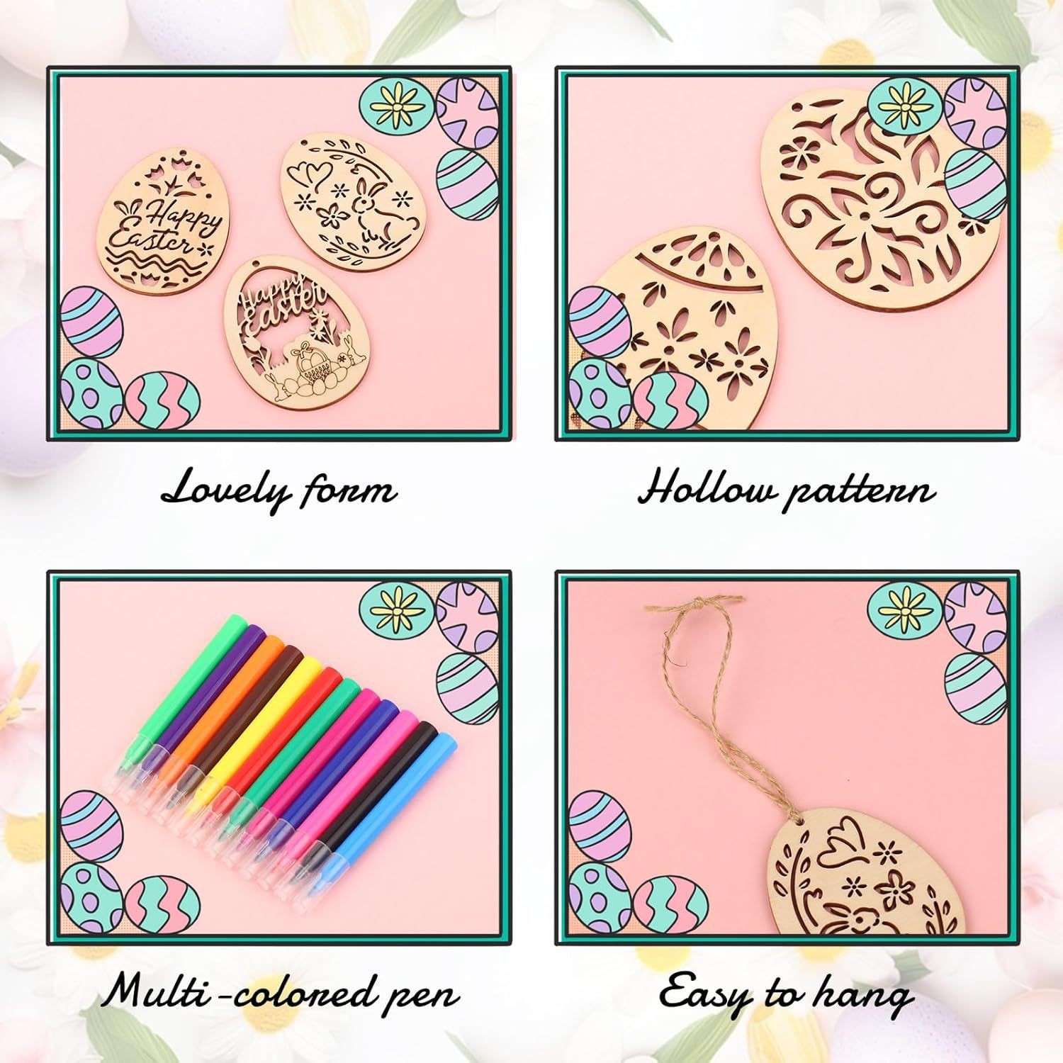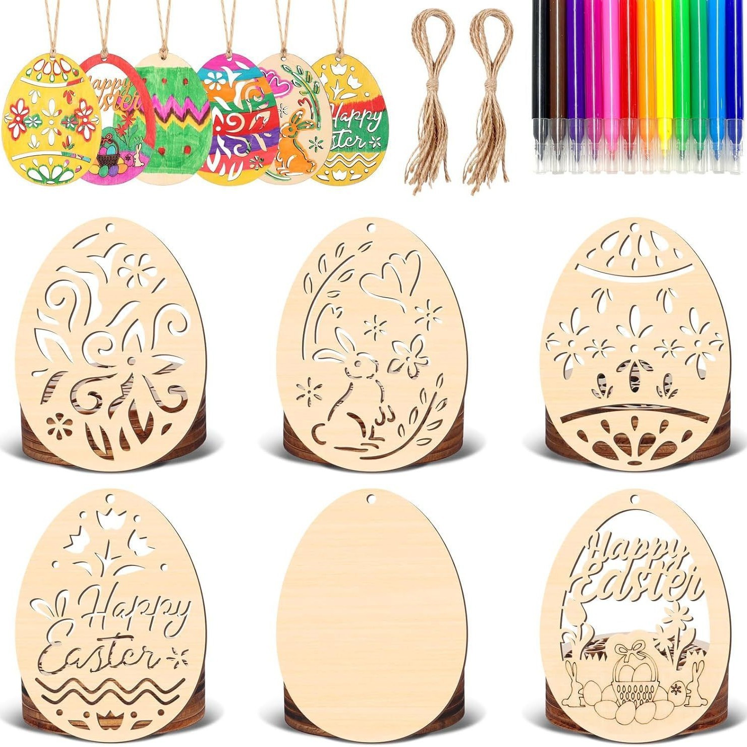 wooden easter egg pendant wooden craftwork holiday party decoration diy graffiti egg creative egg
