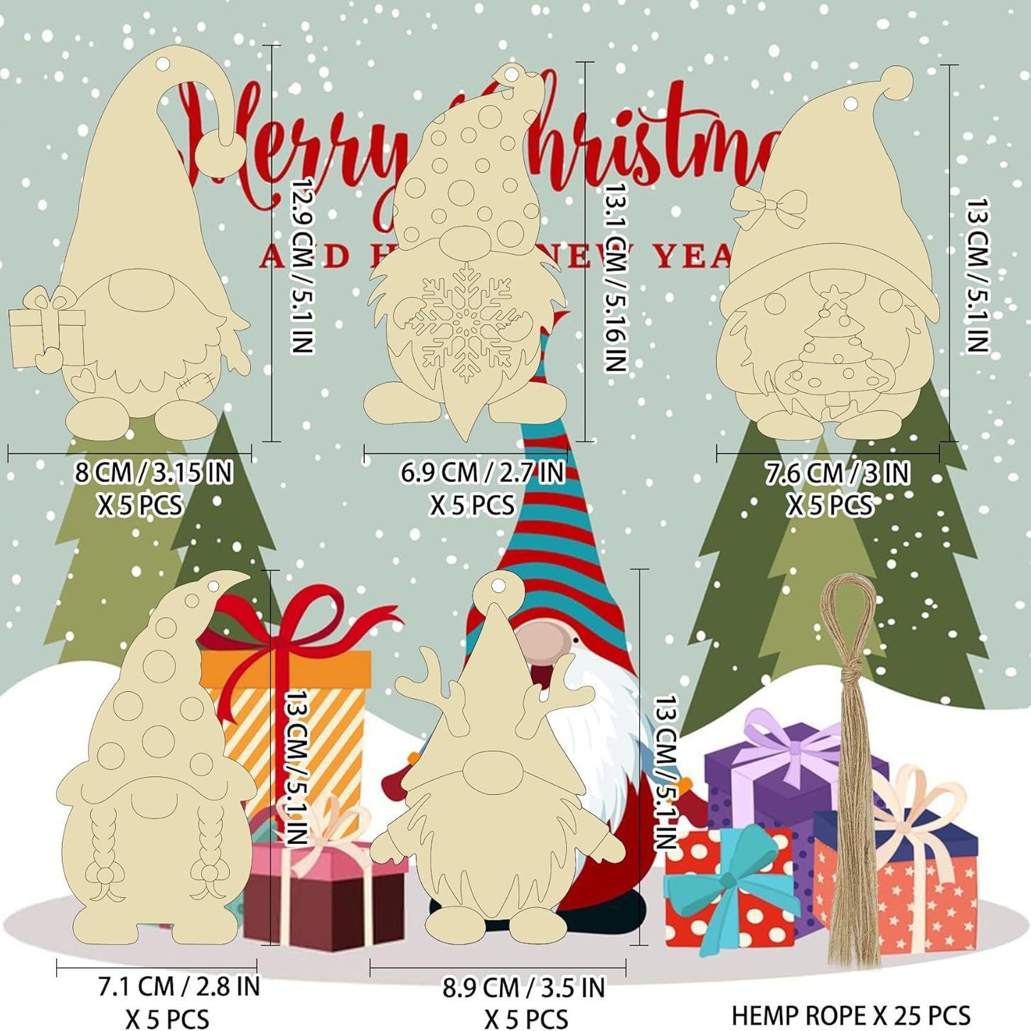 30-piece set of dwarf christmas dolls, wooden handmade hanging gnome elves ornaments for christmas