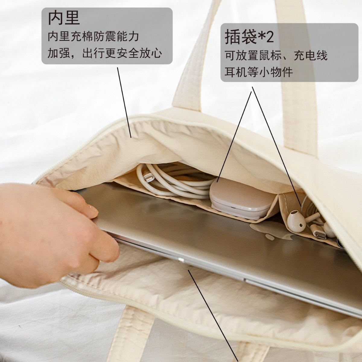 moonlight white [built-in shockproof cotton] — suitable for 11–15 inch laptops