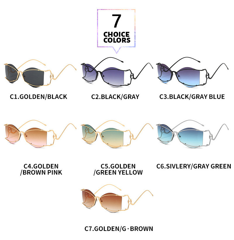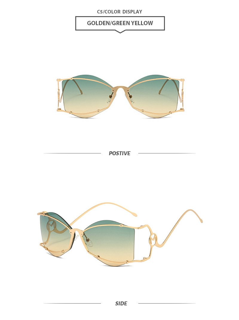 gold frame, green and yellow lenses