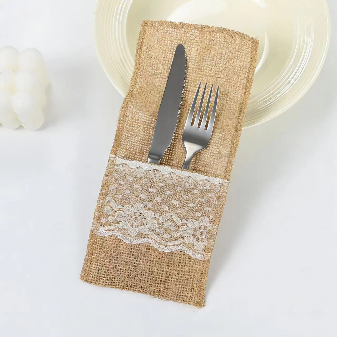 Purpose: European style linen lace knife and fork bag, fashion style, various models, can be used for table decoration.