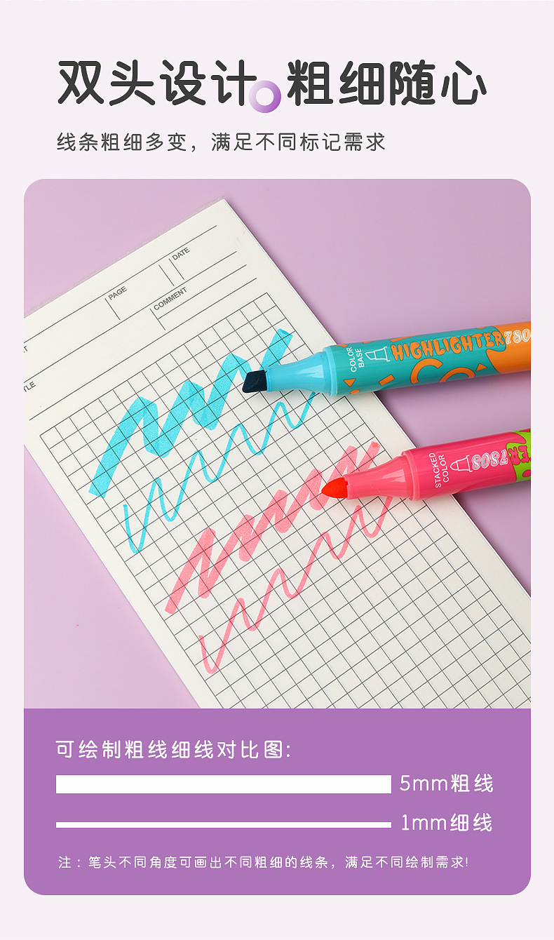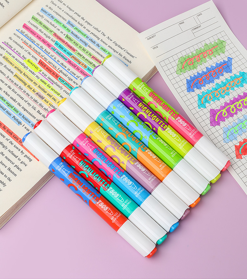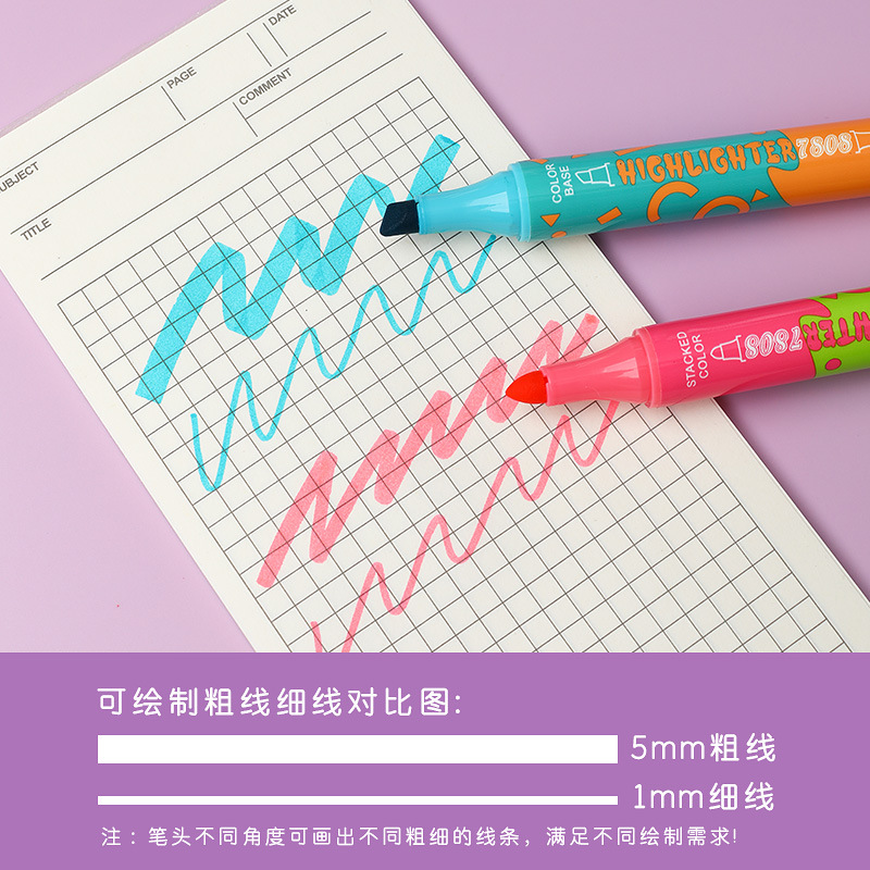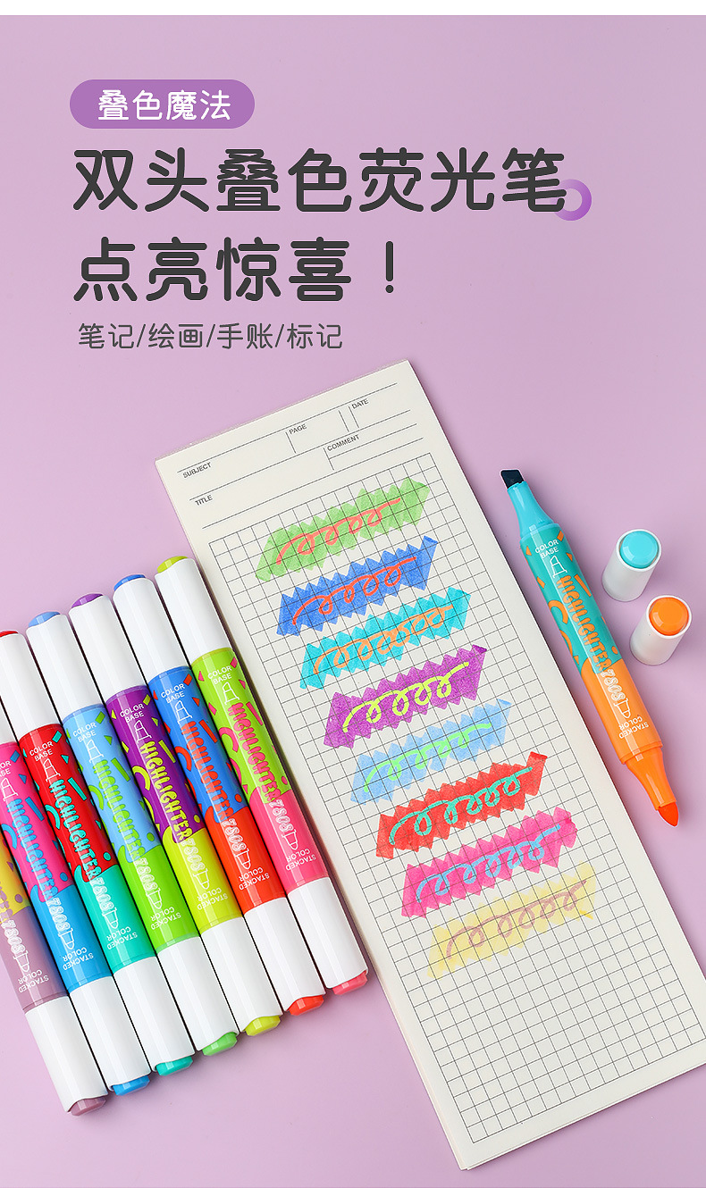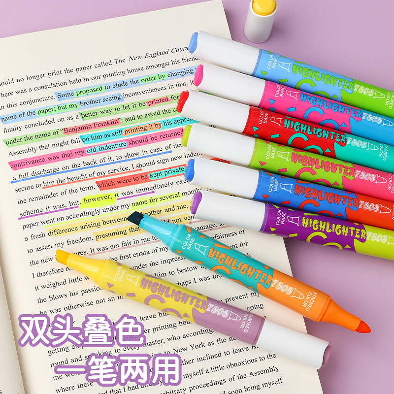 large capacity double-headed fluorescent pen stackable student color marking pen key line marker diy journal pen