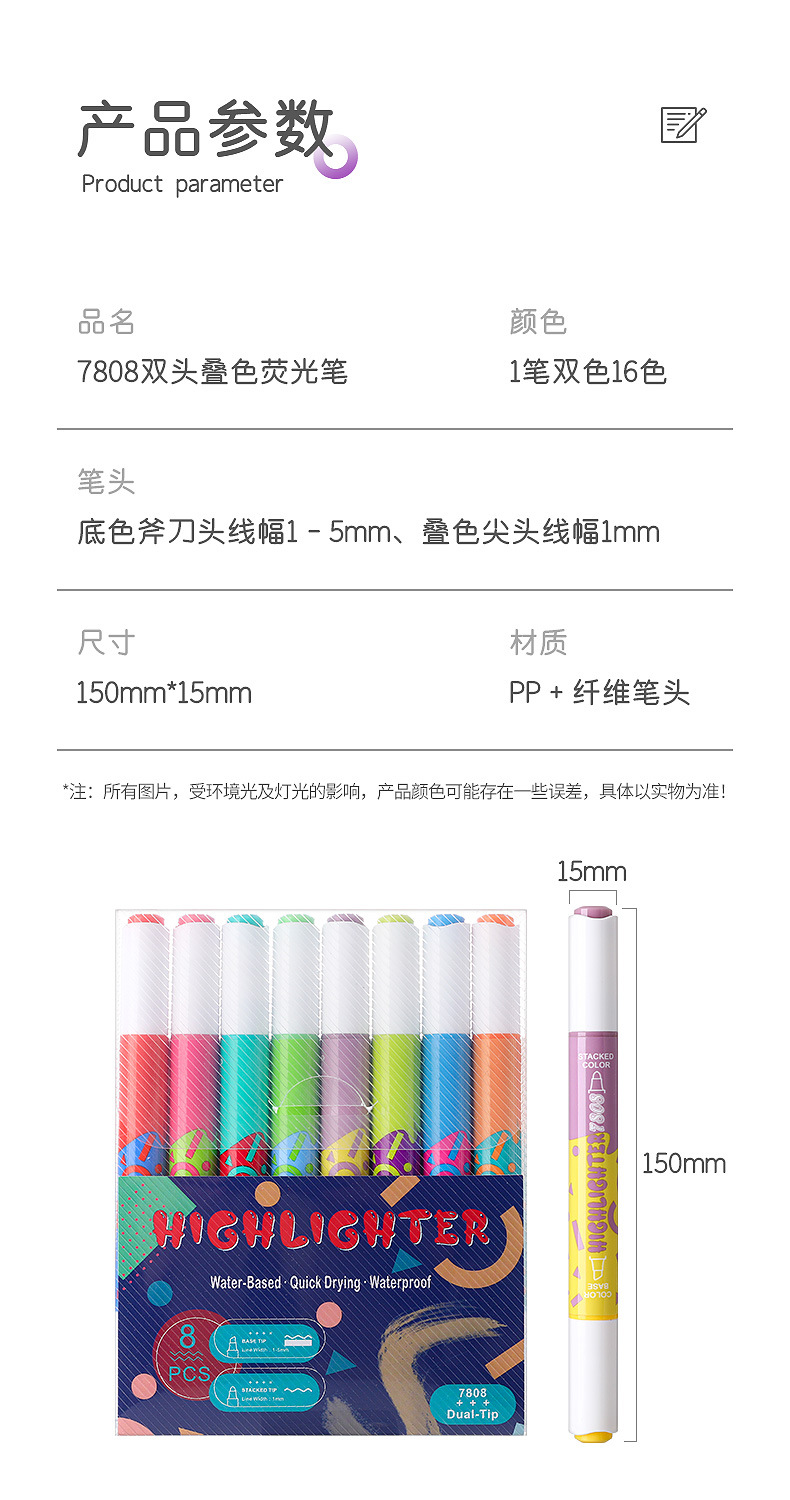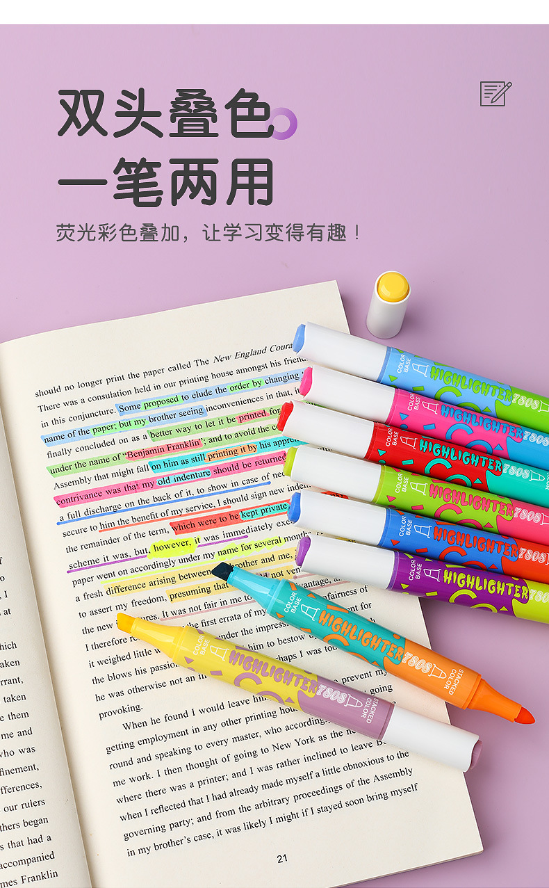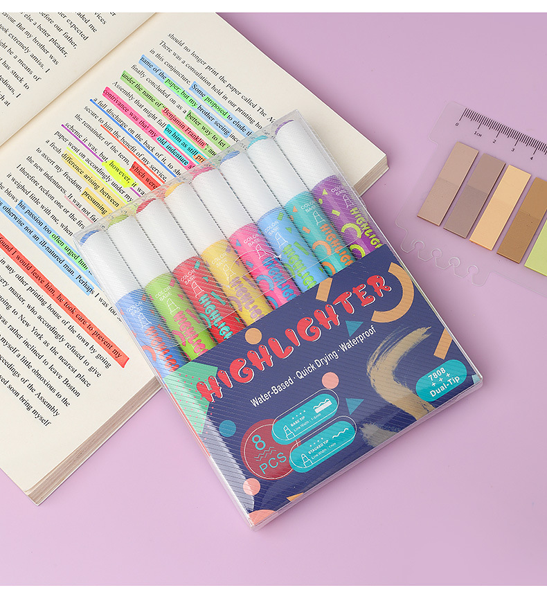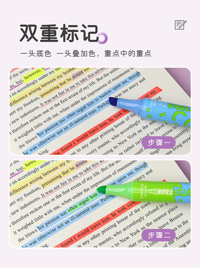 large capacity double-headed fluorescent pen stackable student color marking pen key line marker diy journal pen