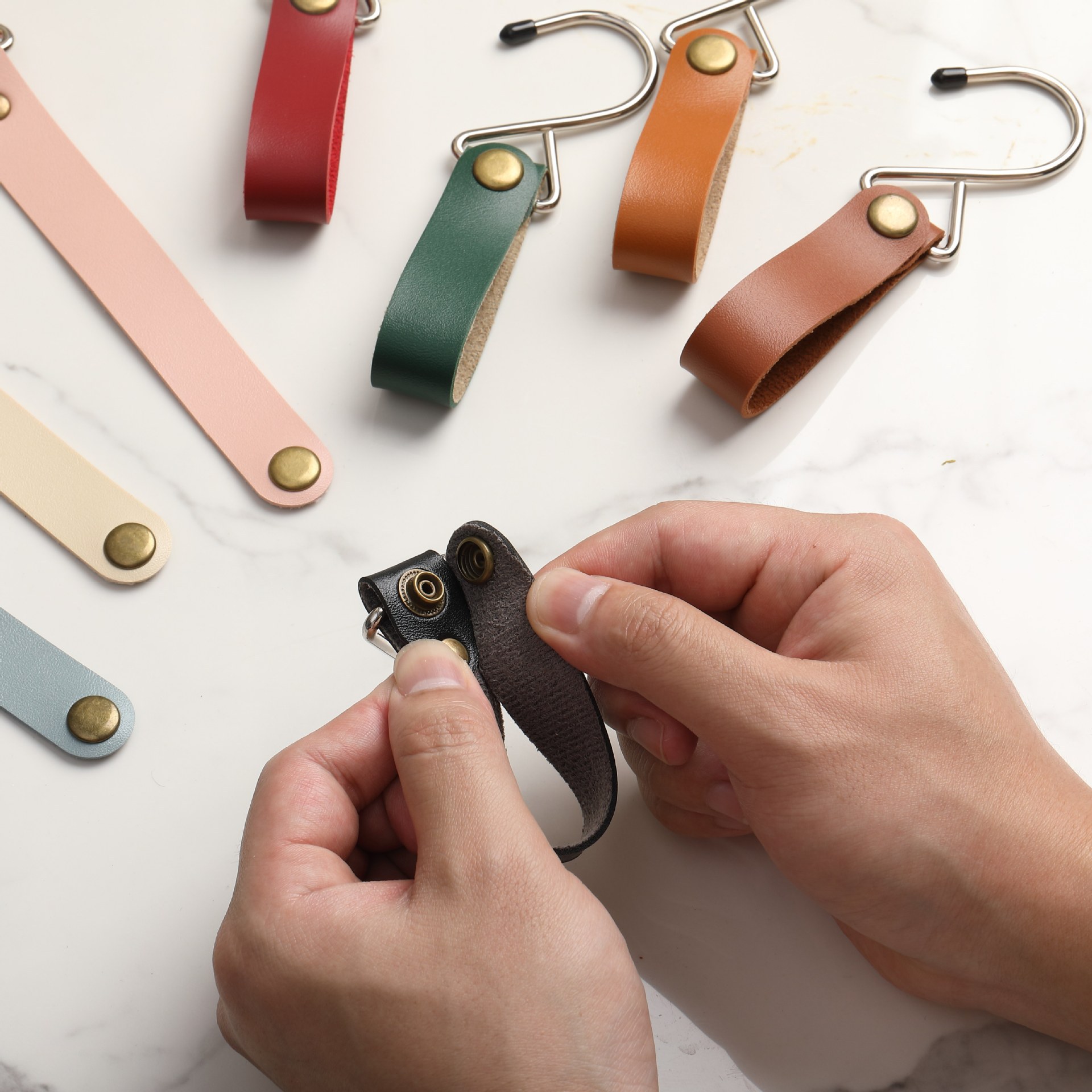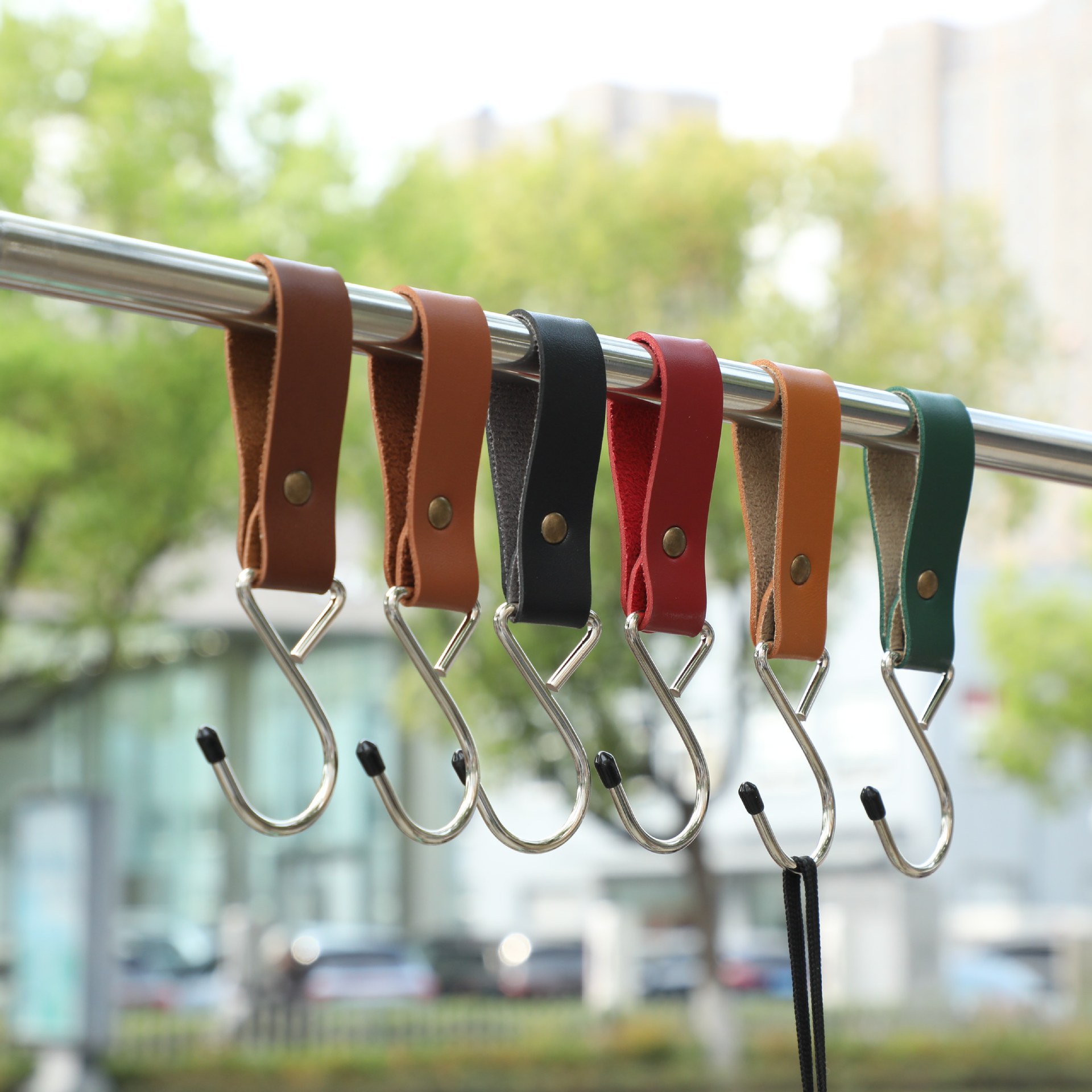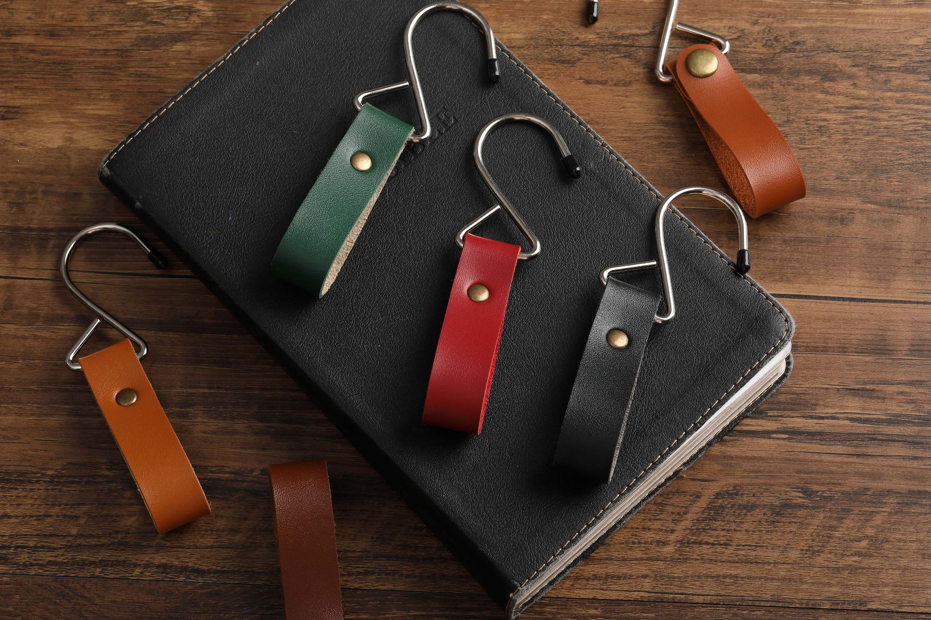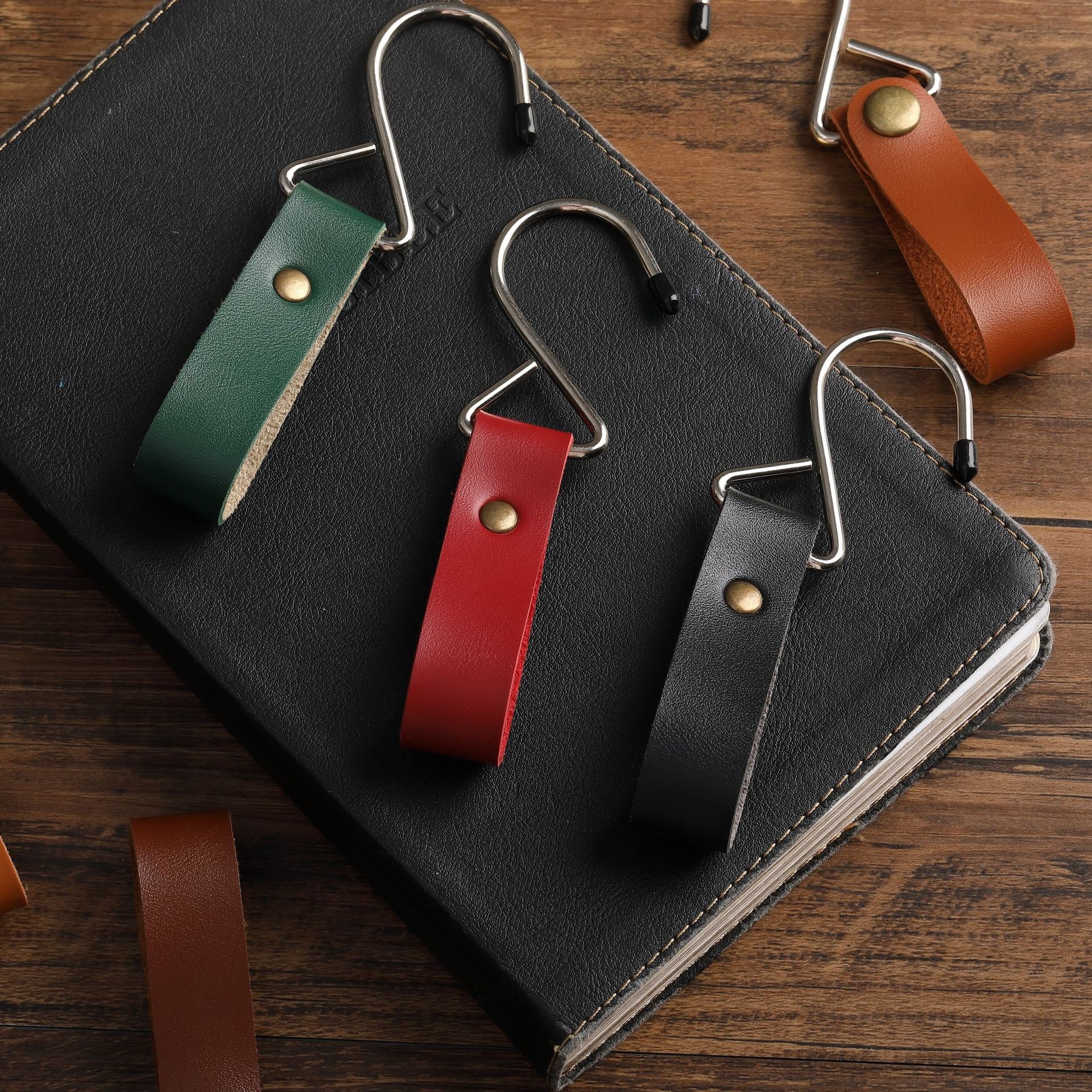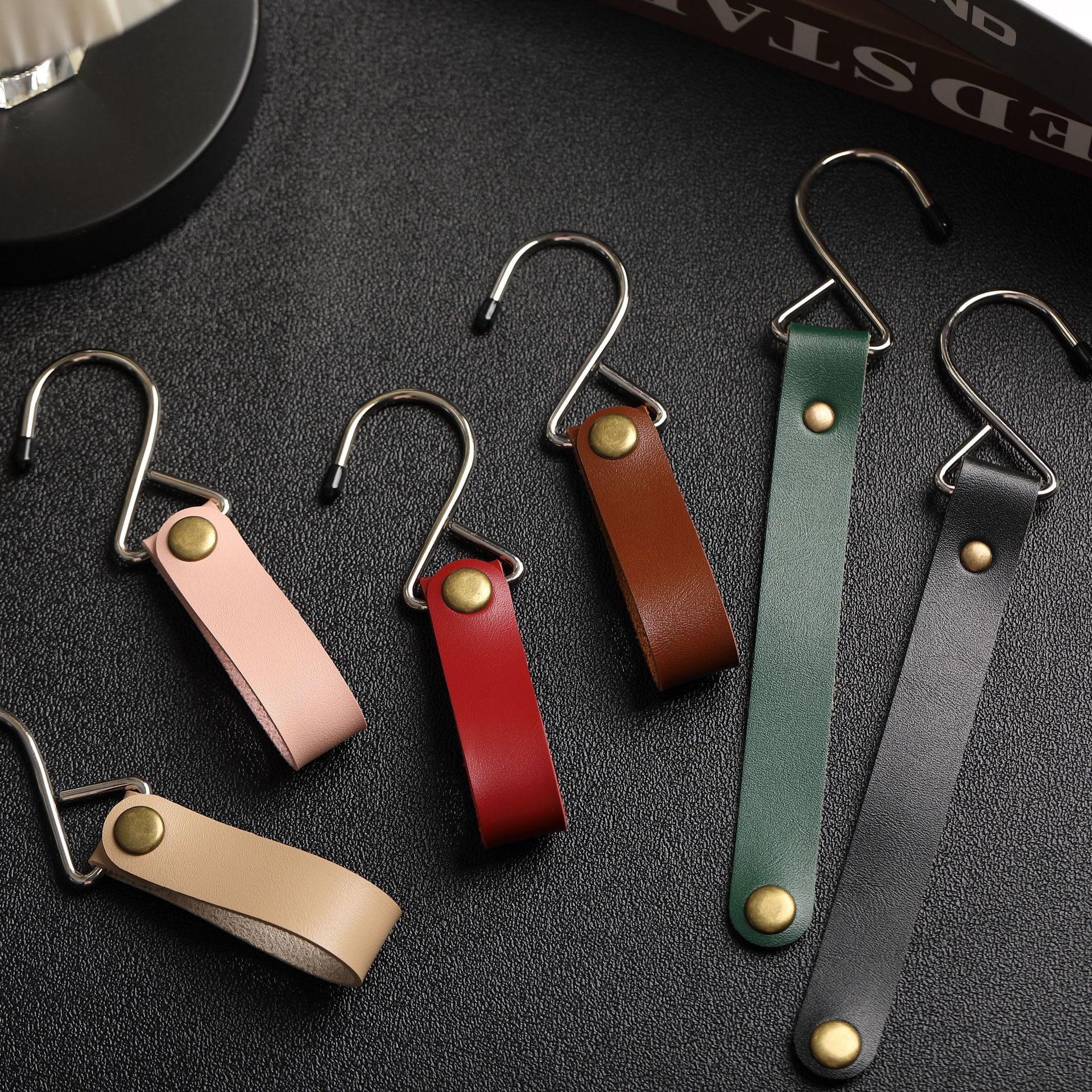 2cm wide leather-dark brown-extra large metal hook