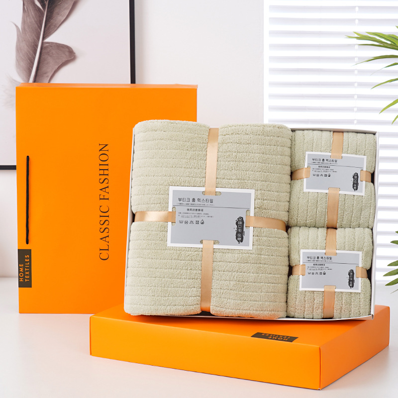 towels set coral fleece towels gift box three-piece set company gift giving presents logo