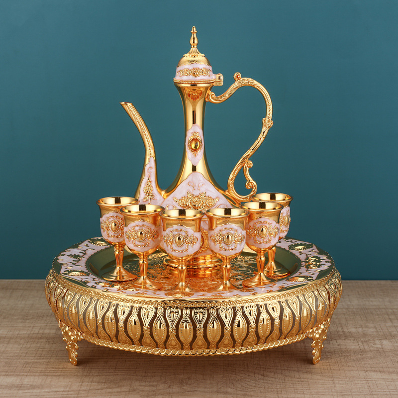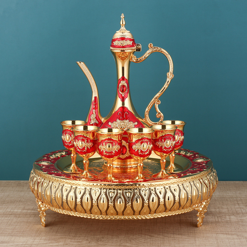 golden red flat wine set