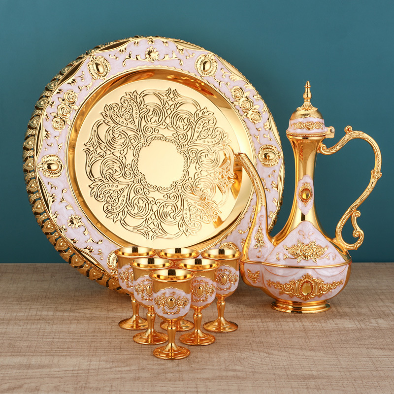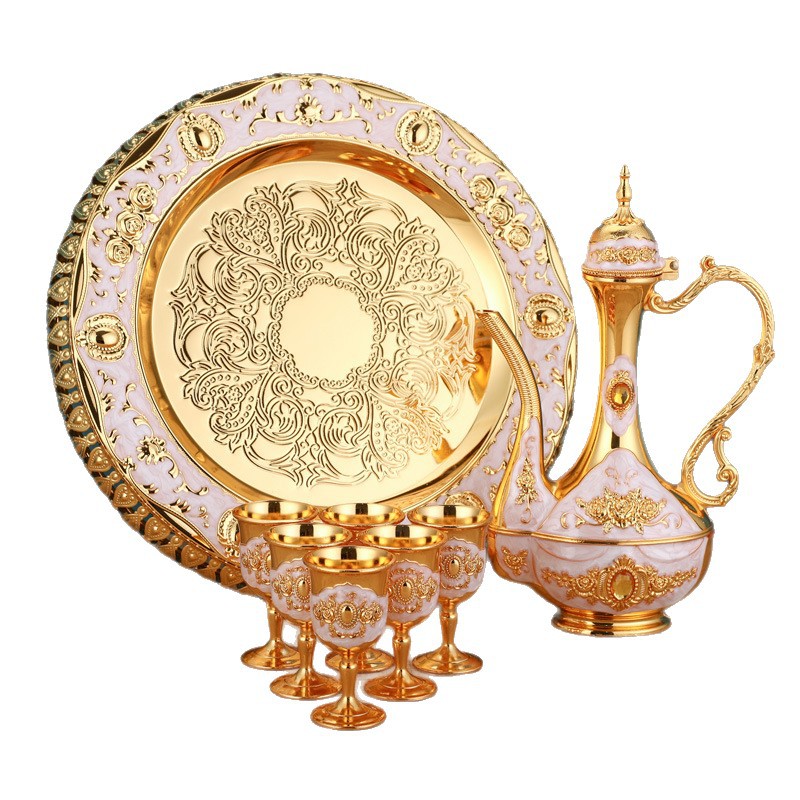gold and white flat wine set