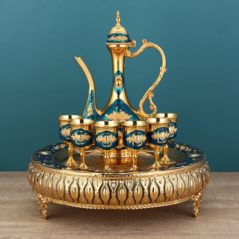 gold and blue flat wine set