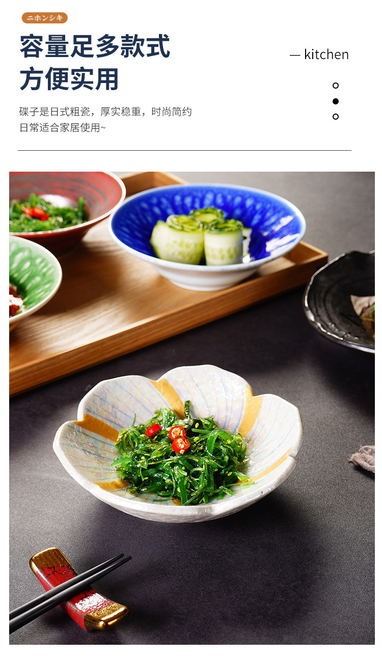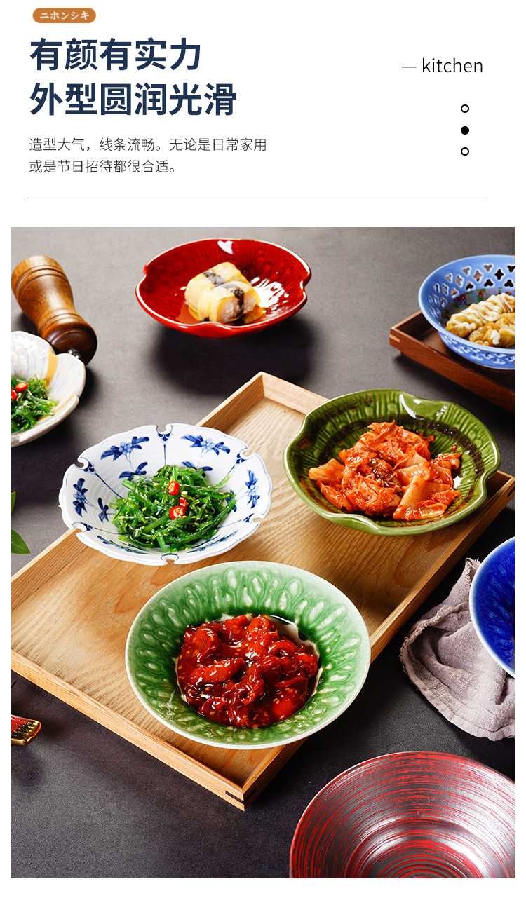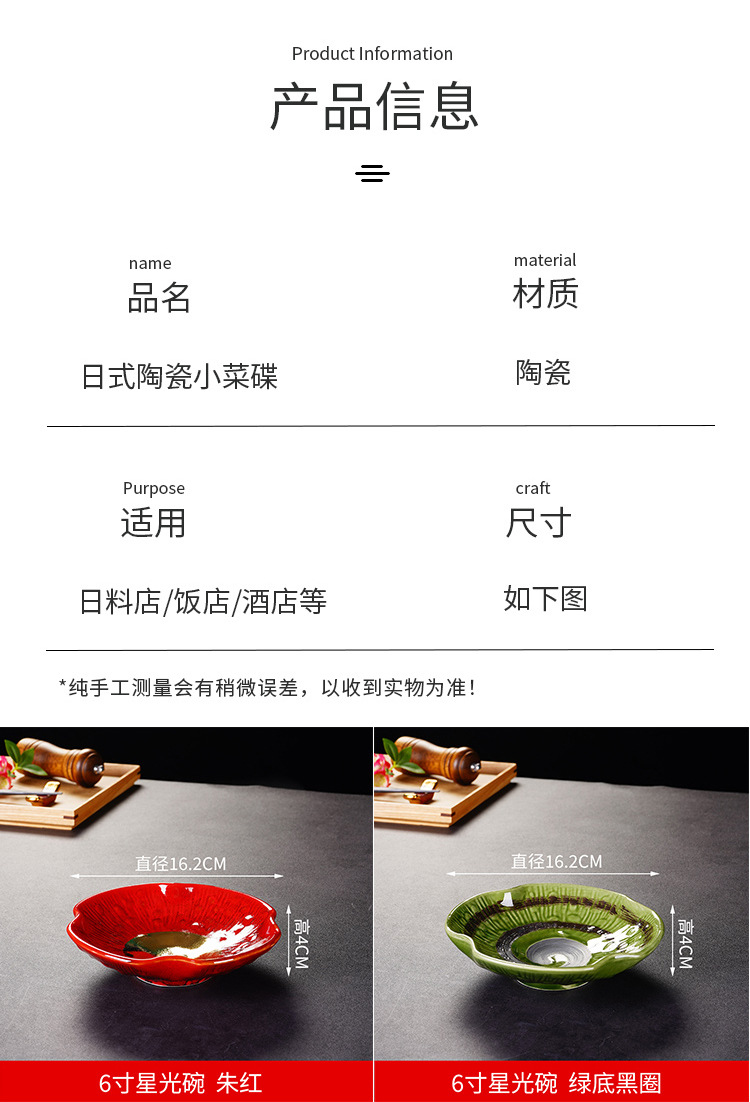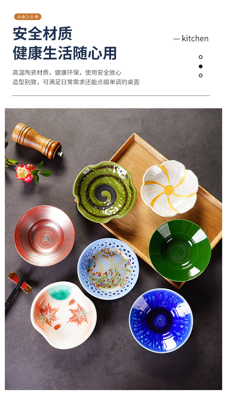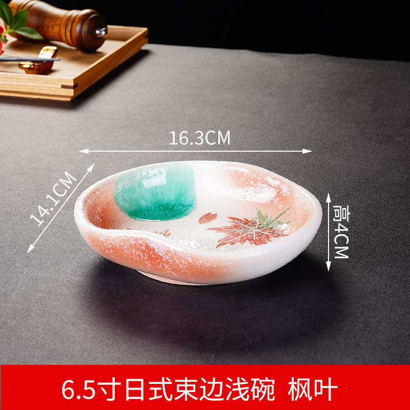 6.5-inch japanese-style bound-edge shallow bowl maple leaf