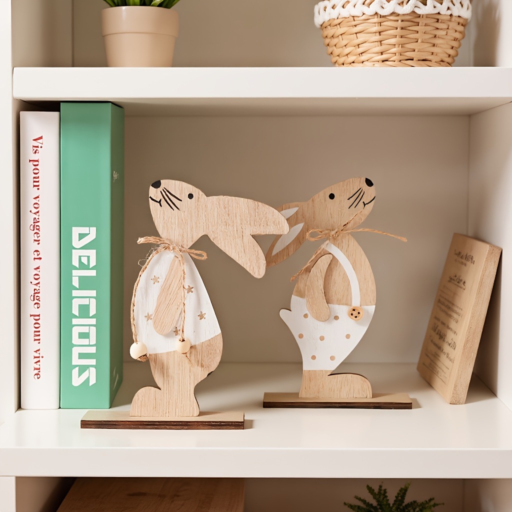 cross-border new arrival wooden easter rabbit decorative ornament nordic style wooden home decorative crafts ornament