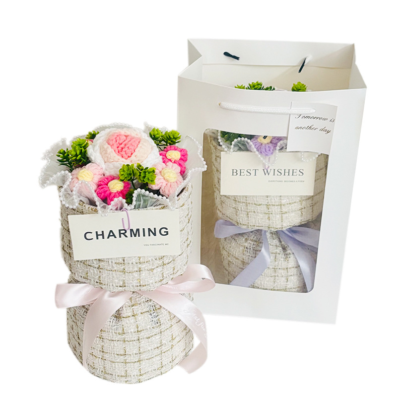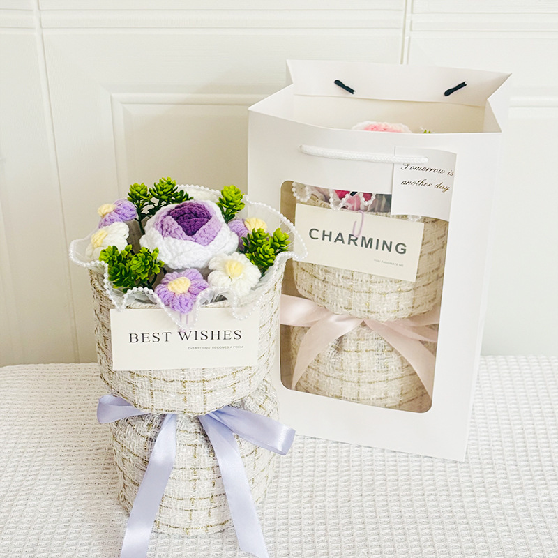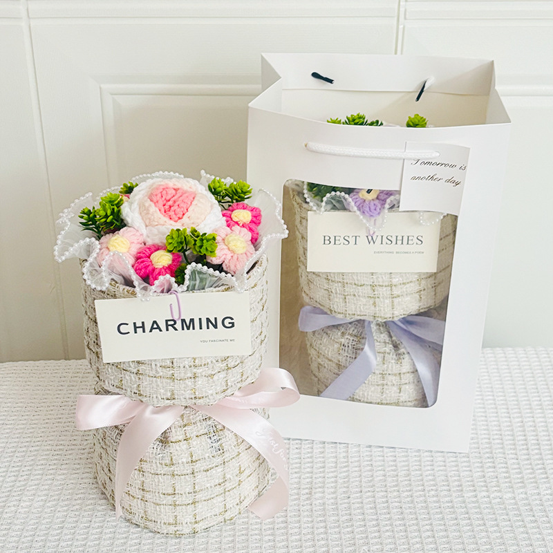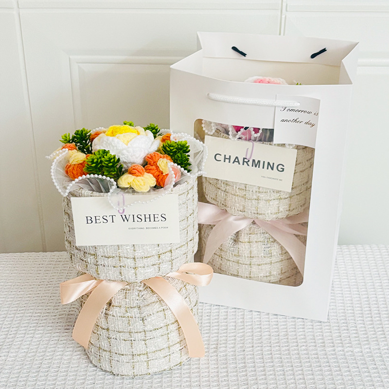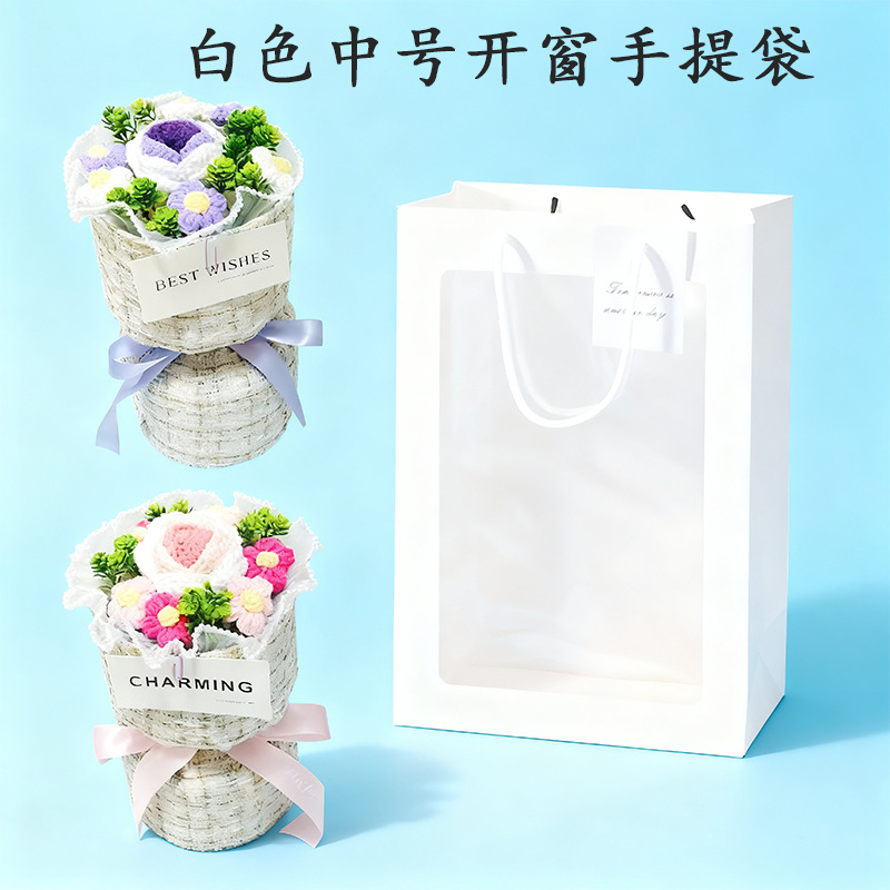 knitted flower bouquet windowed tote bag