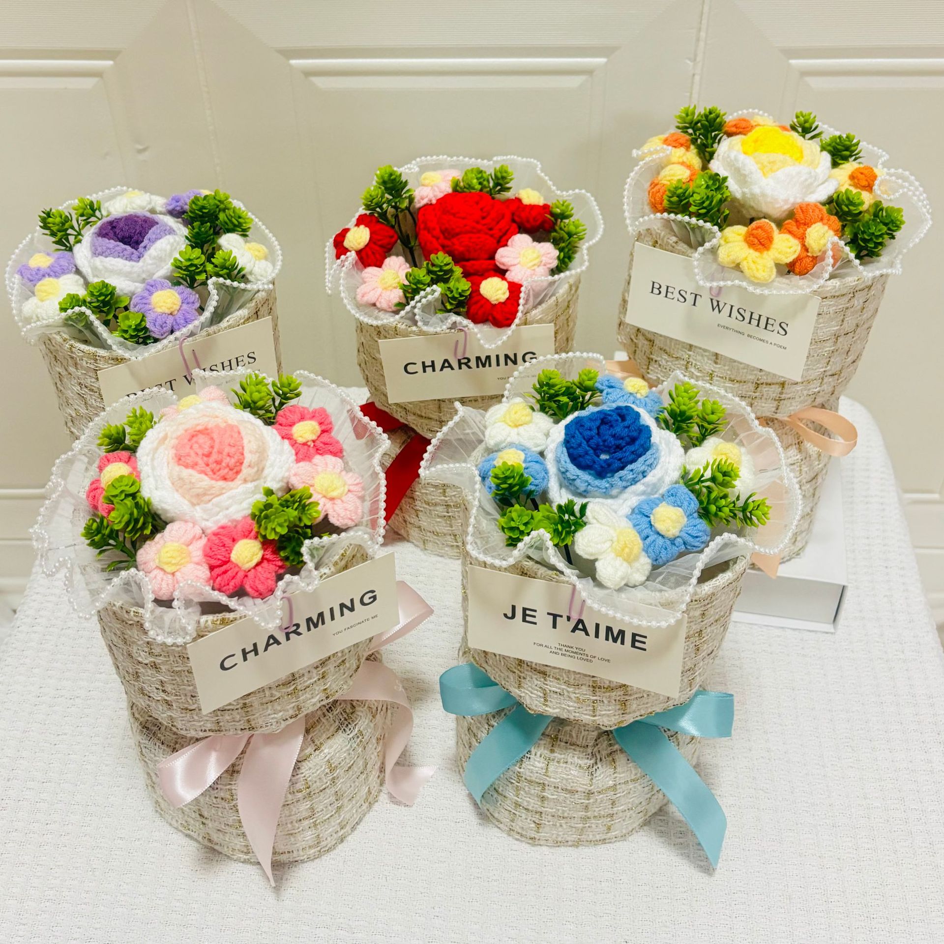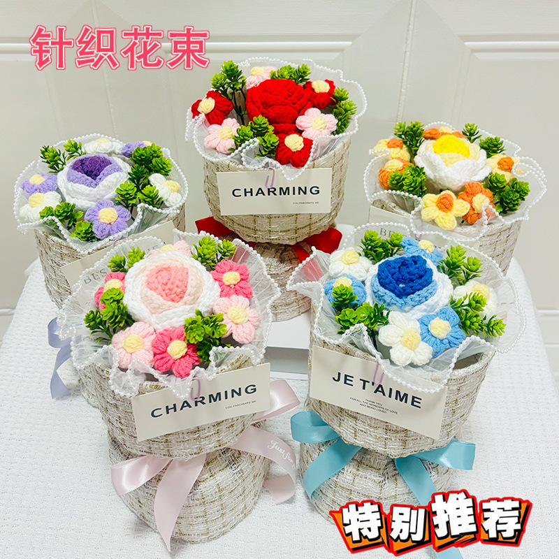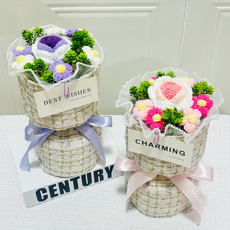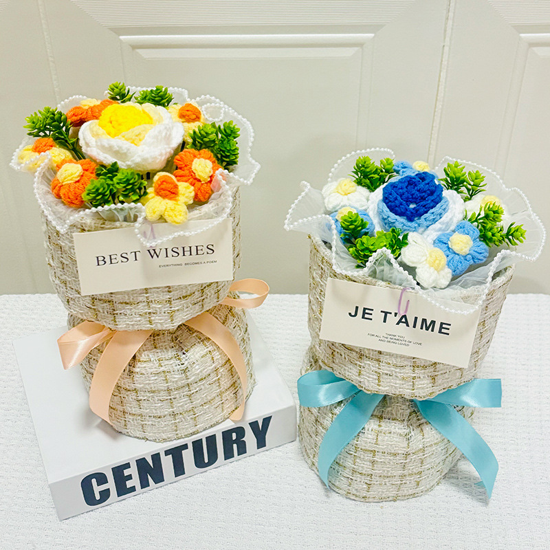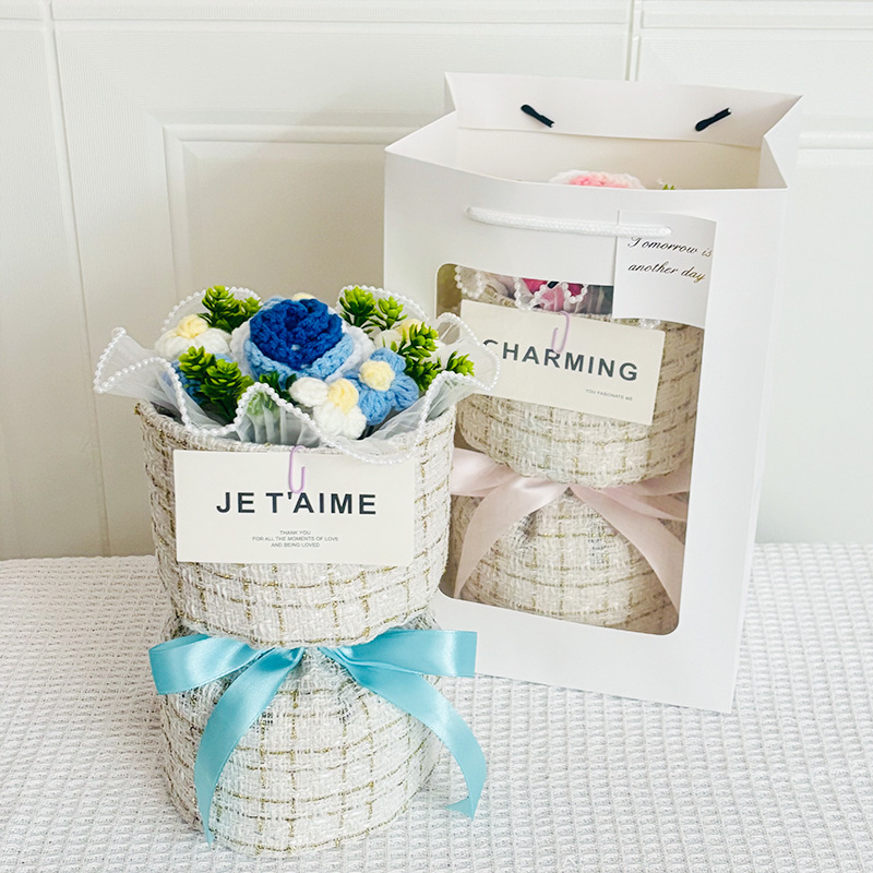 knitted flower bouquet windowed tote bag