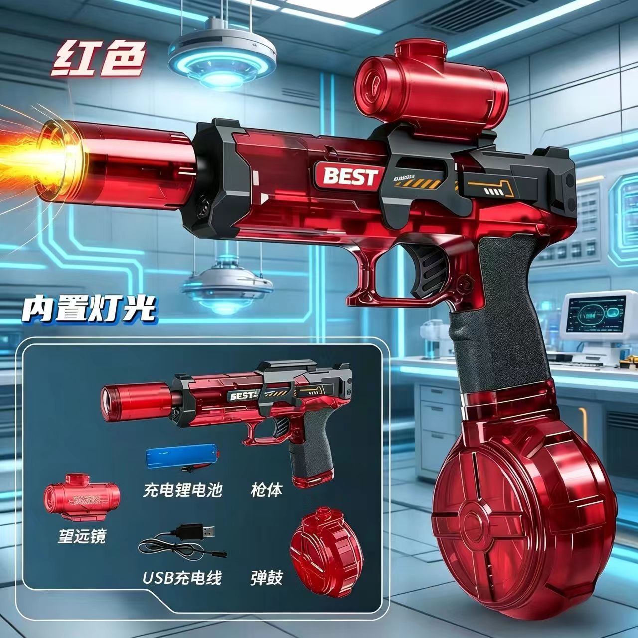 [xiaomeng shark] electric water gun + large capacity ammunition drum model