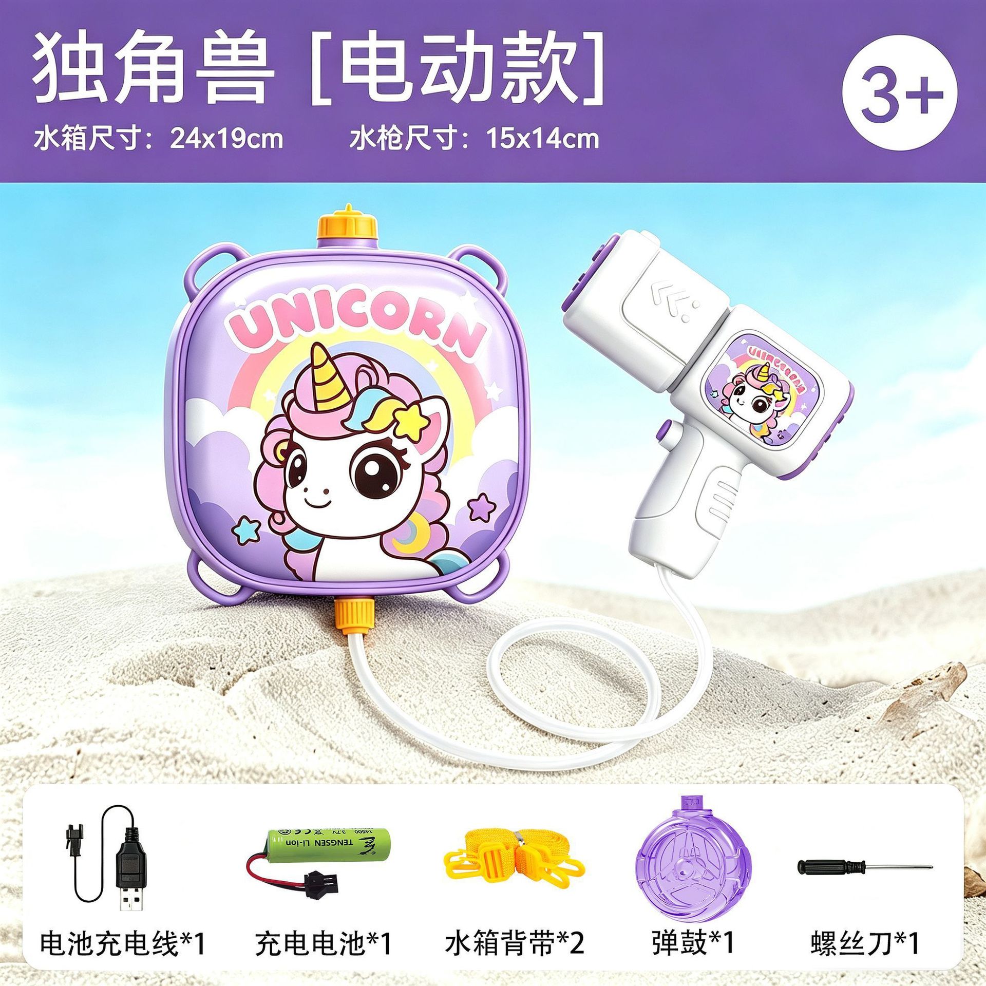 [magic unicorn] electric water gun + backpack rj45 + ammunition drum model (usb charging cable + lithium battery + screwdriver)