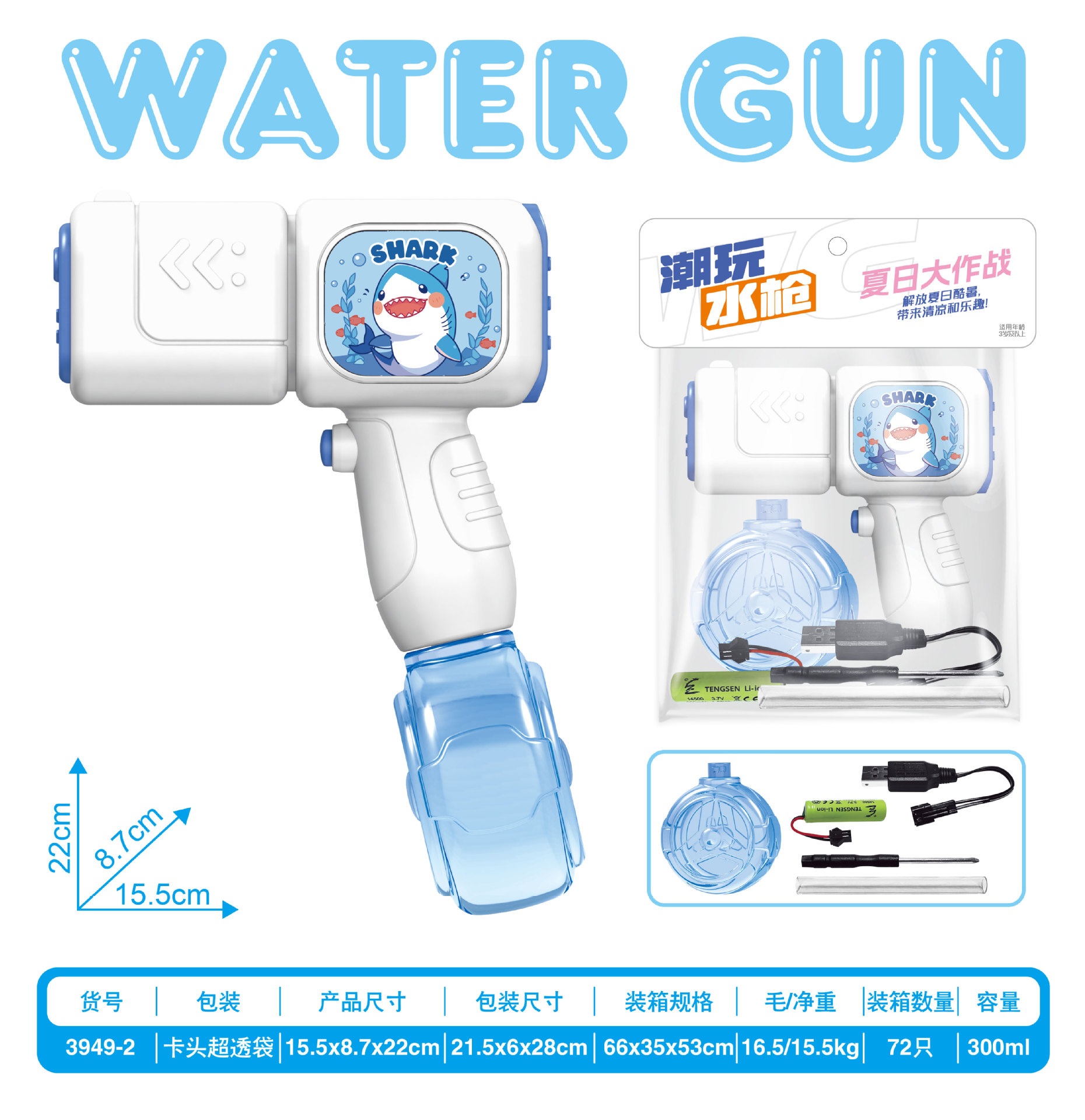 [cute little cute shark] electric water gun + backpack rj45 + ammunition drum model (usb charging cable + lithium battery + screwdriver)