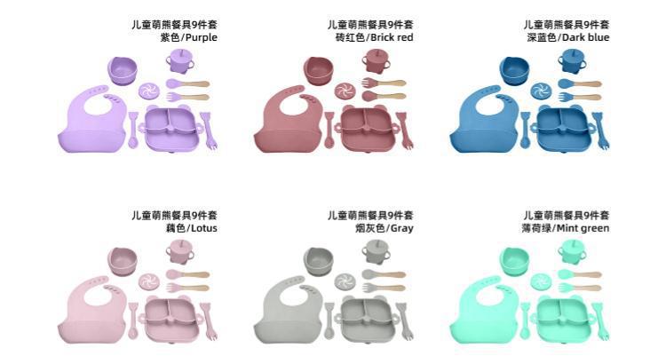 purple – 9-piece bear dinner set