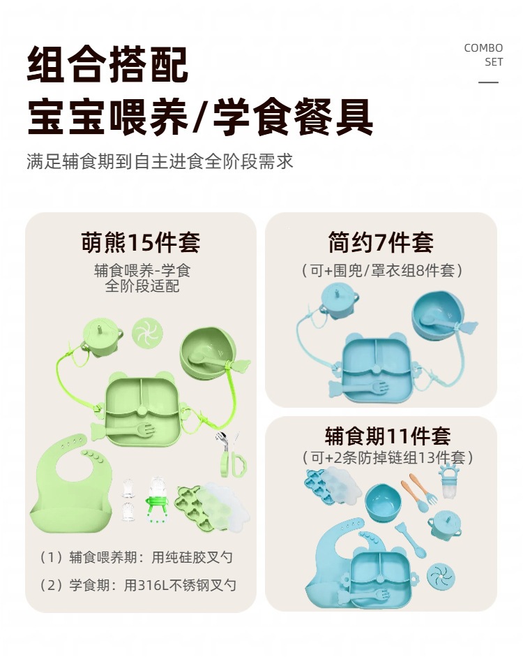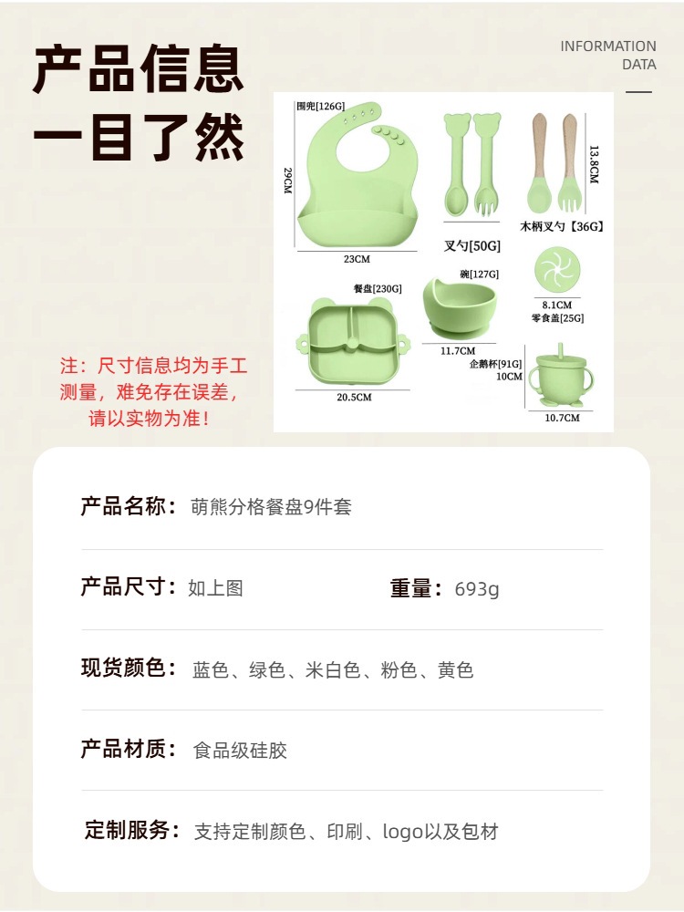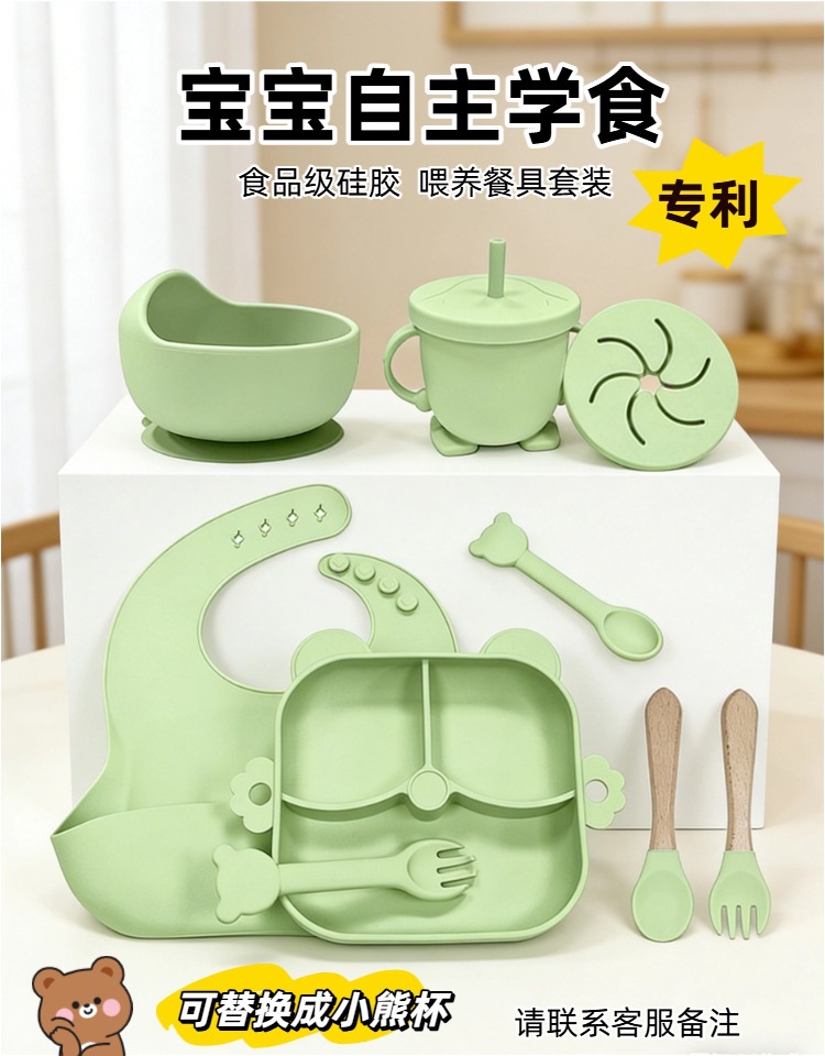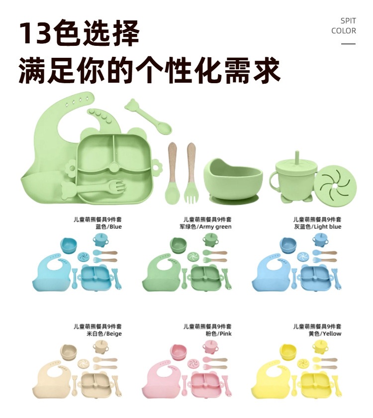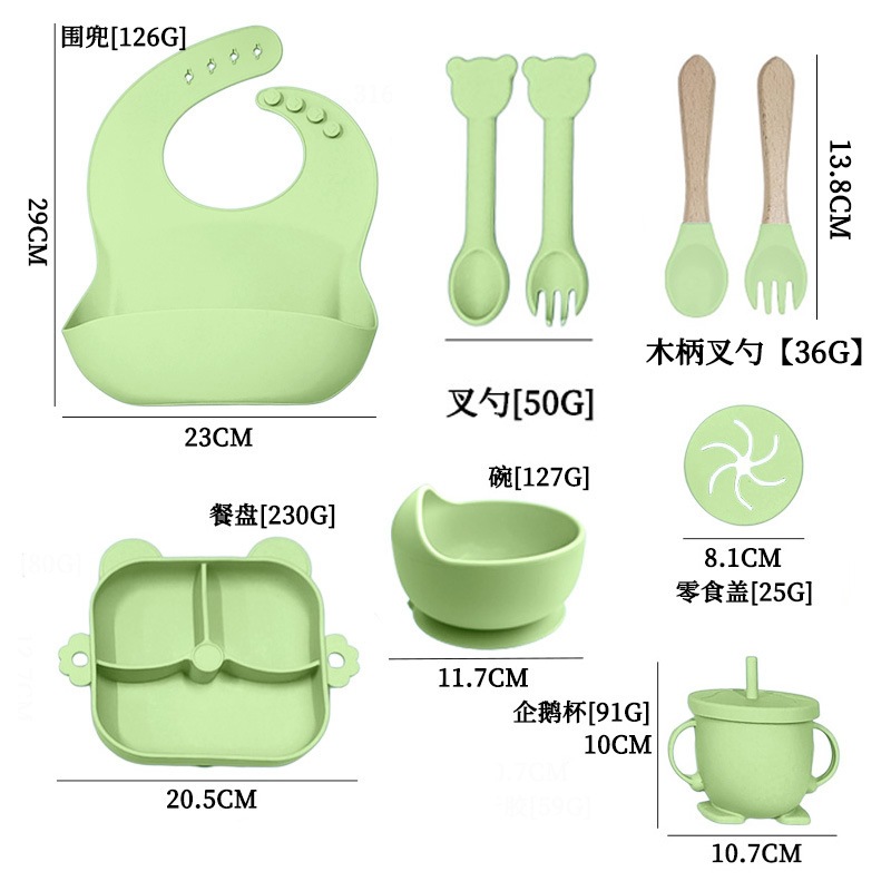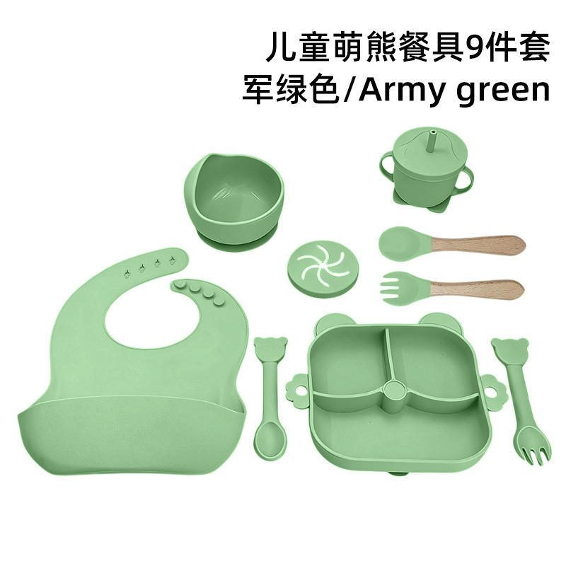 army green – 9-piece little bear dinner set